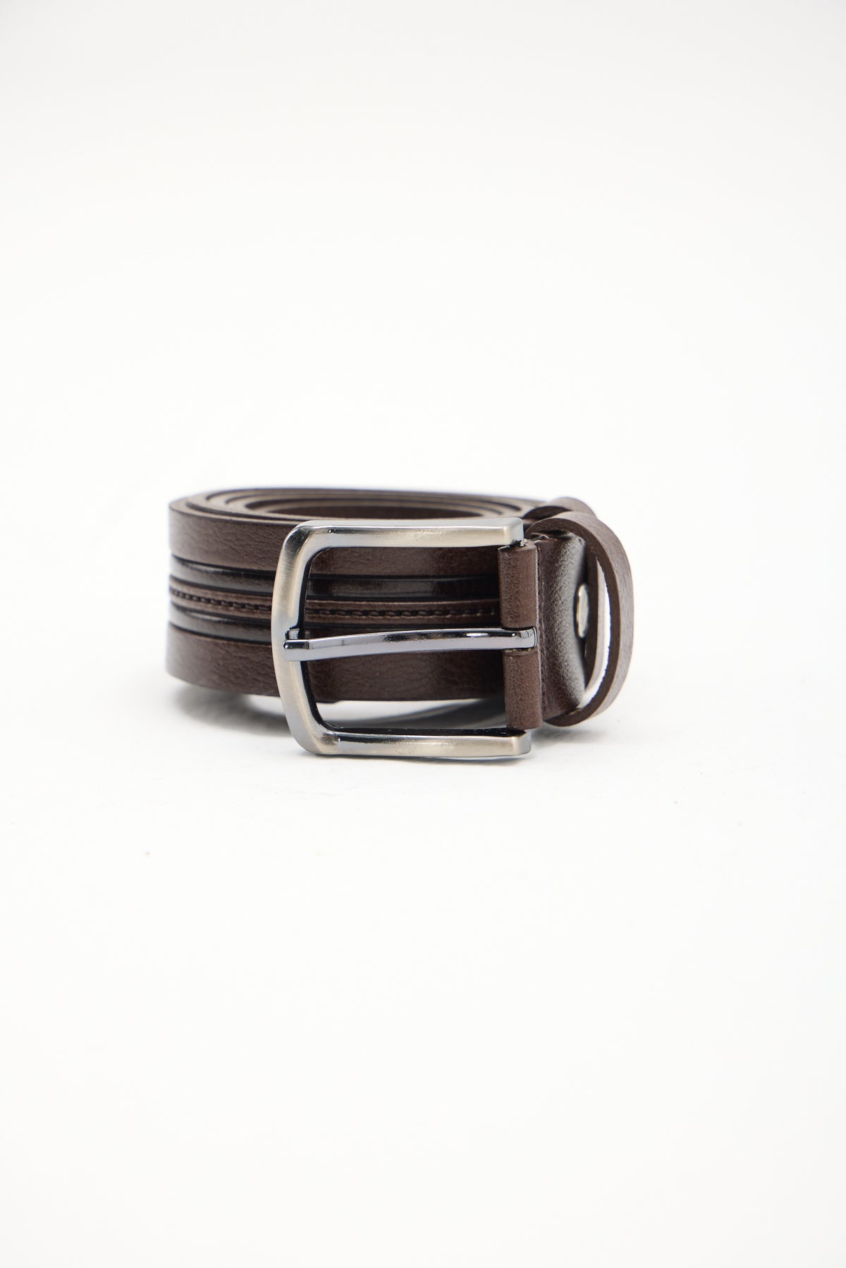 Kahve Orta Dikişli Tokalı Erkek Deri Kemer