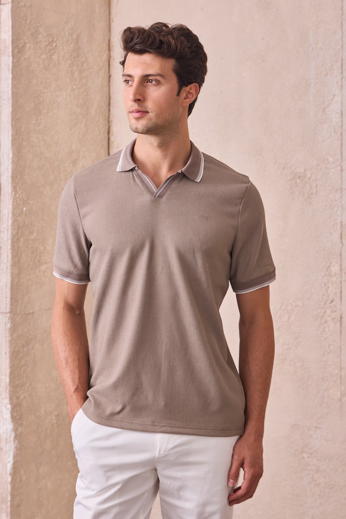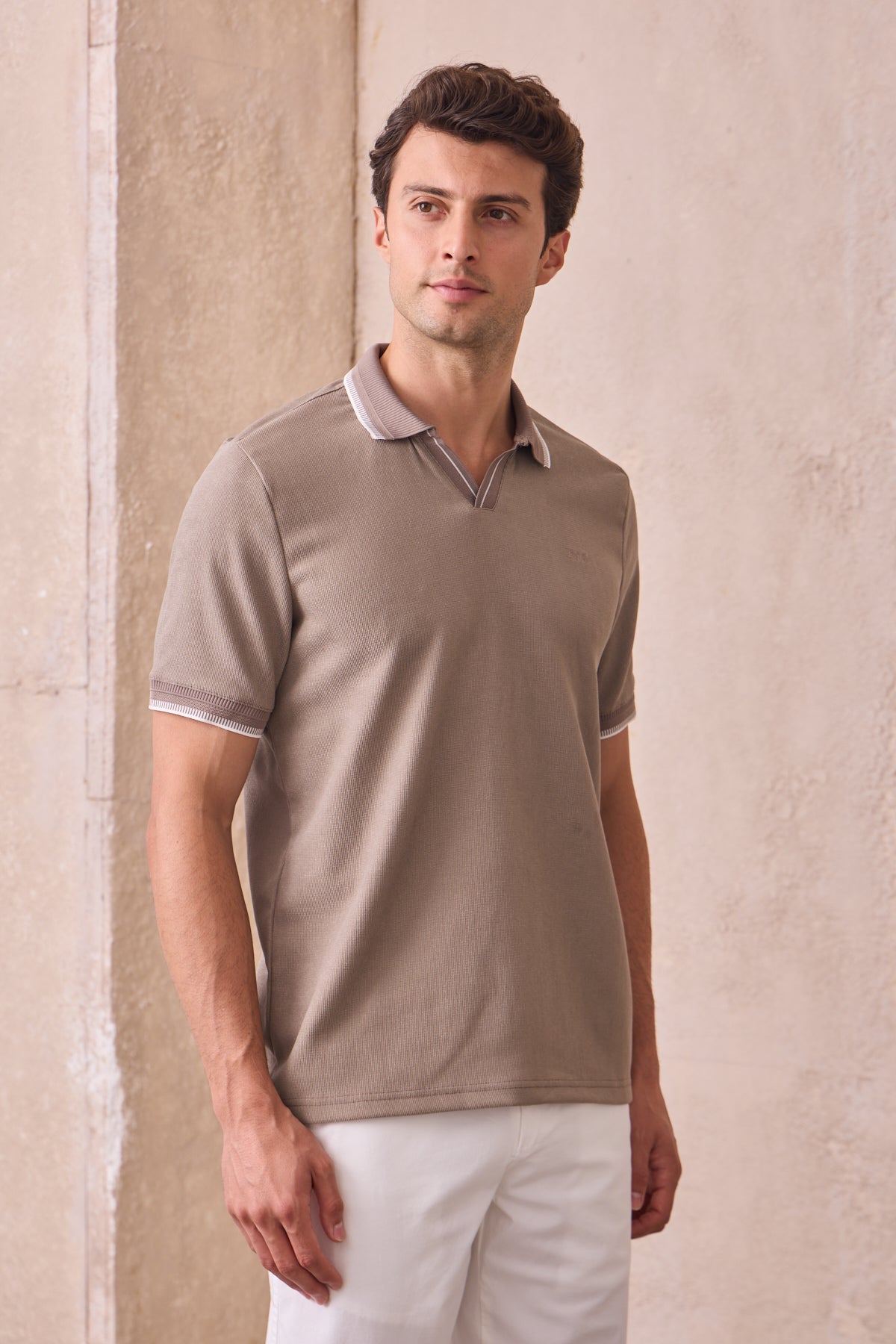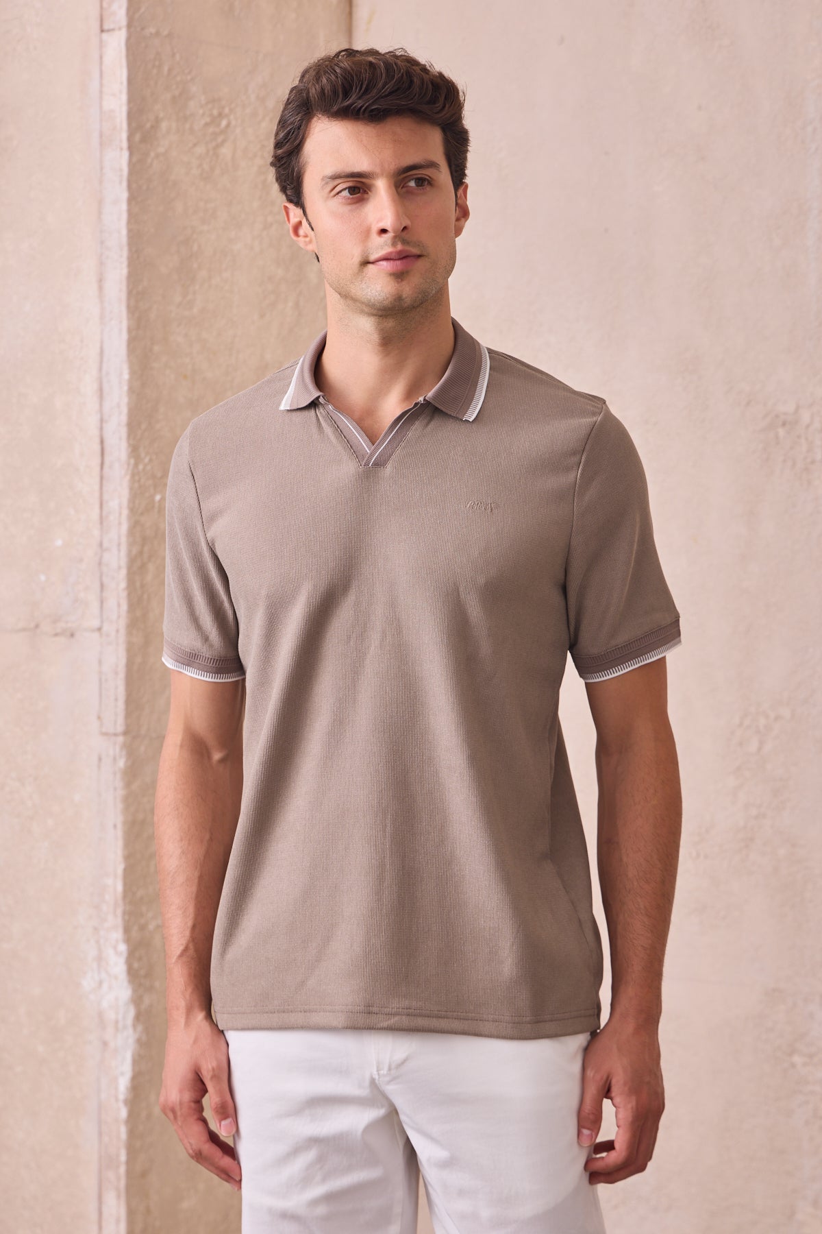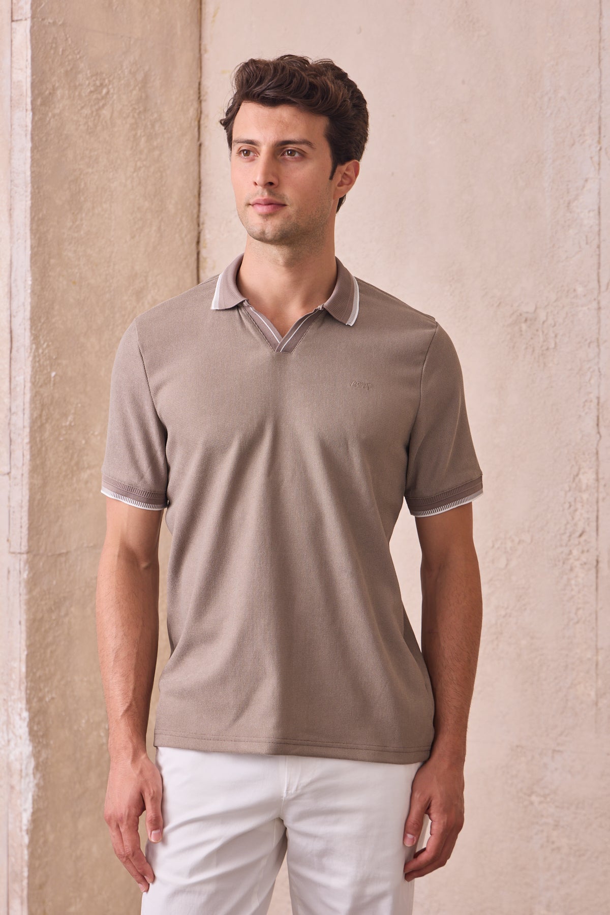 Kısa Kollu Örme Slim Fit Toprak Erkek Polo Tişört