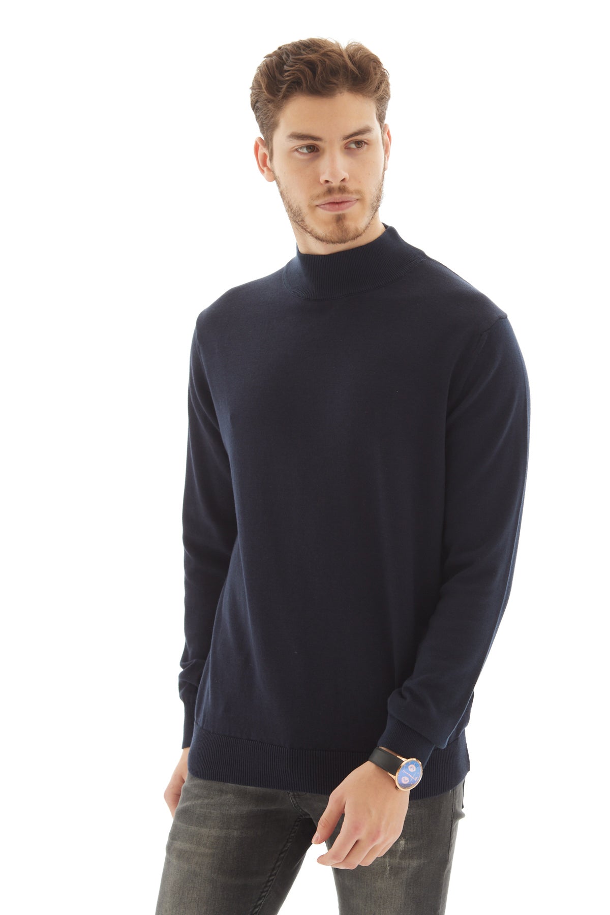 Pamuk Akrilik Slim Fit Yarım Balıkçı Laci Erkek Triko Kazak