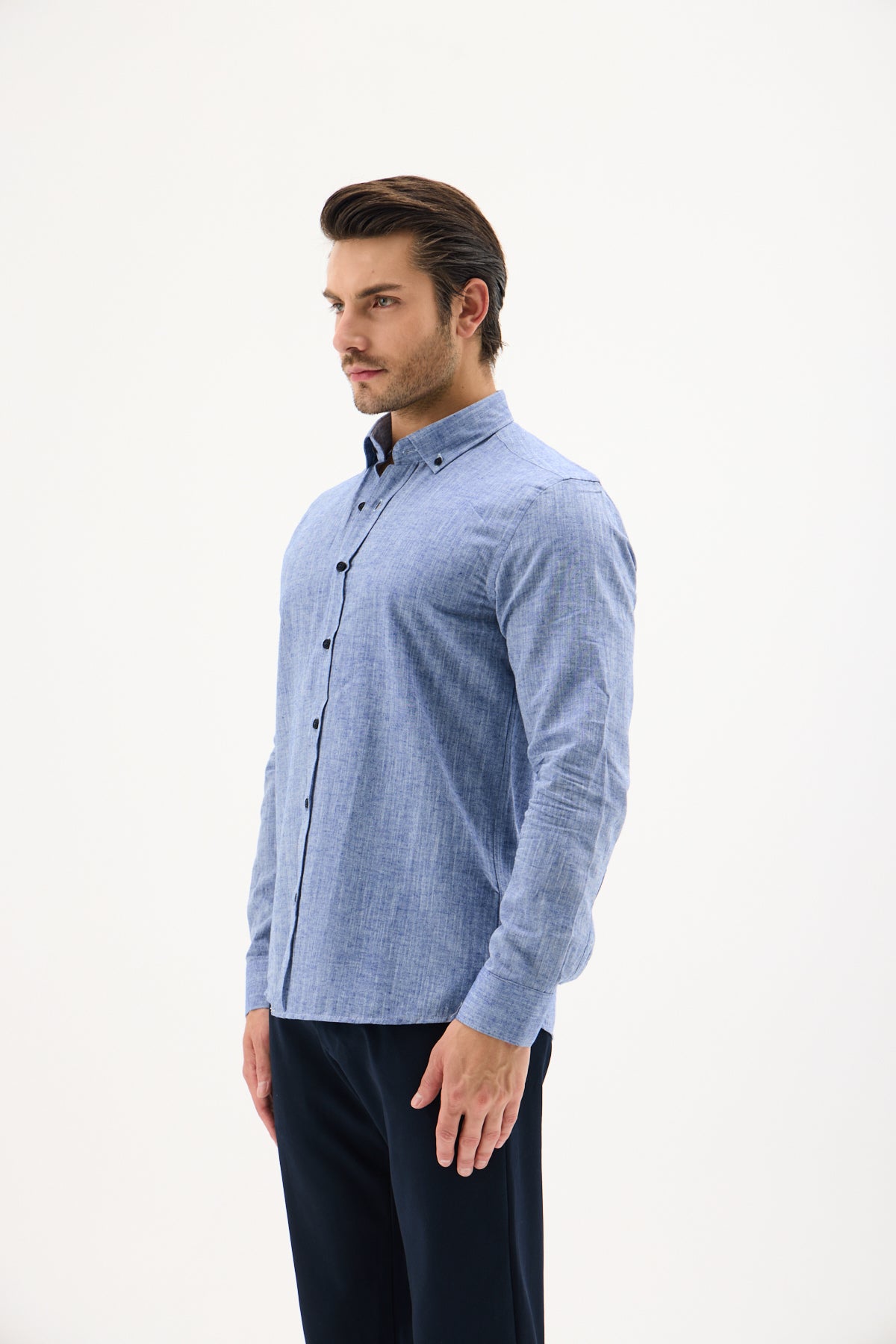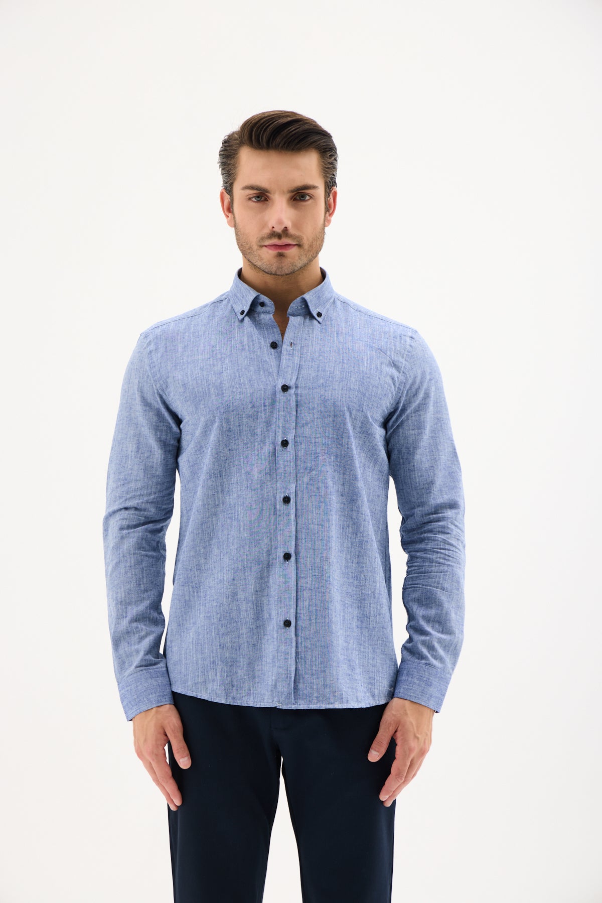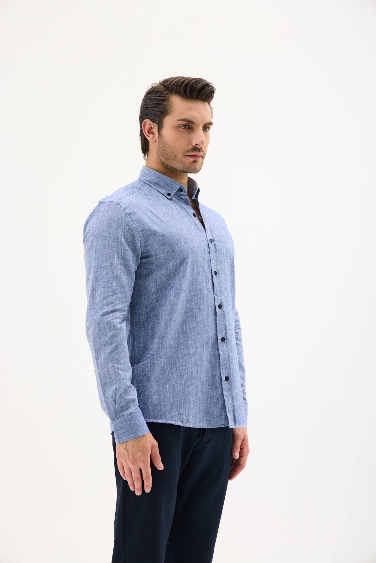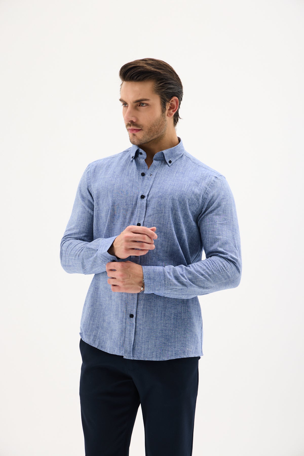 Keten Pamuk Slim Fit Lacivert Erkek Gömlek