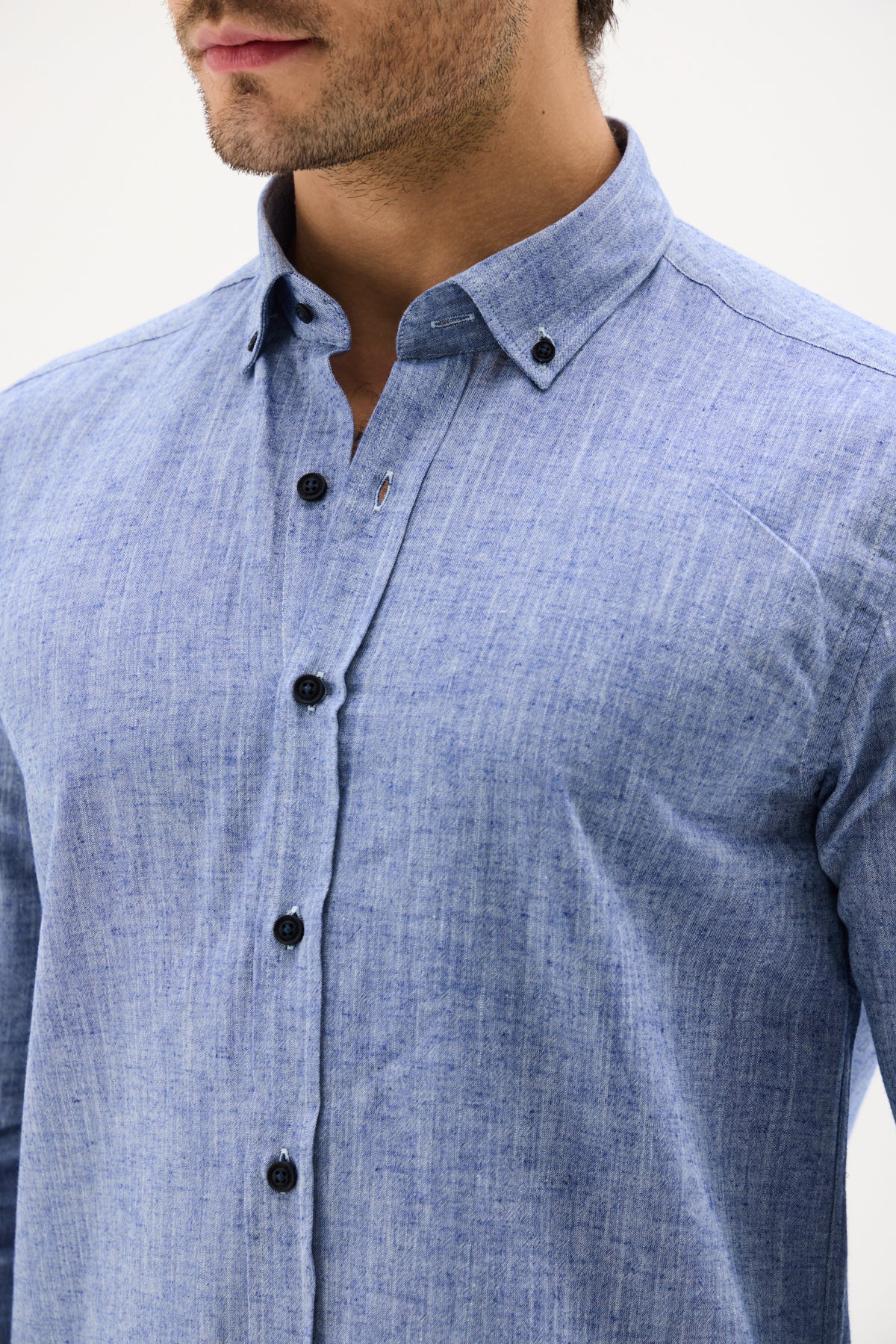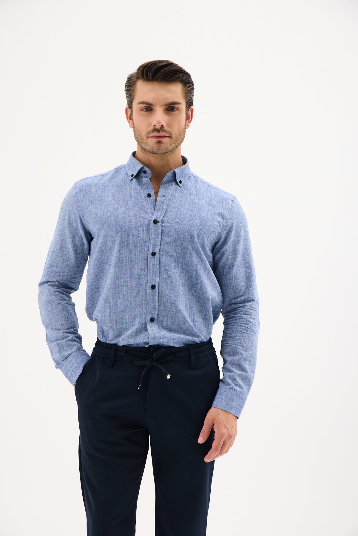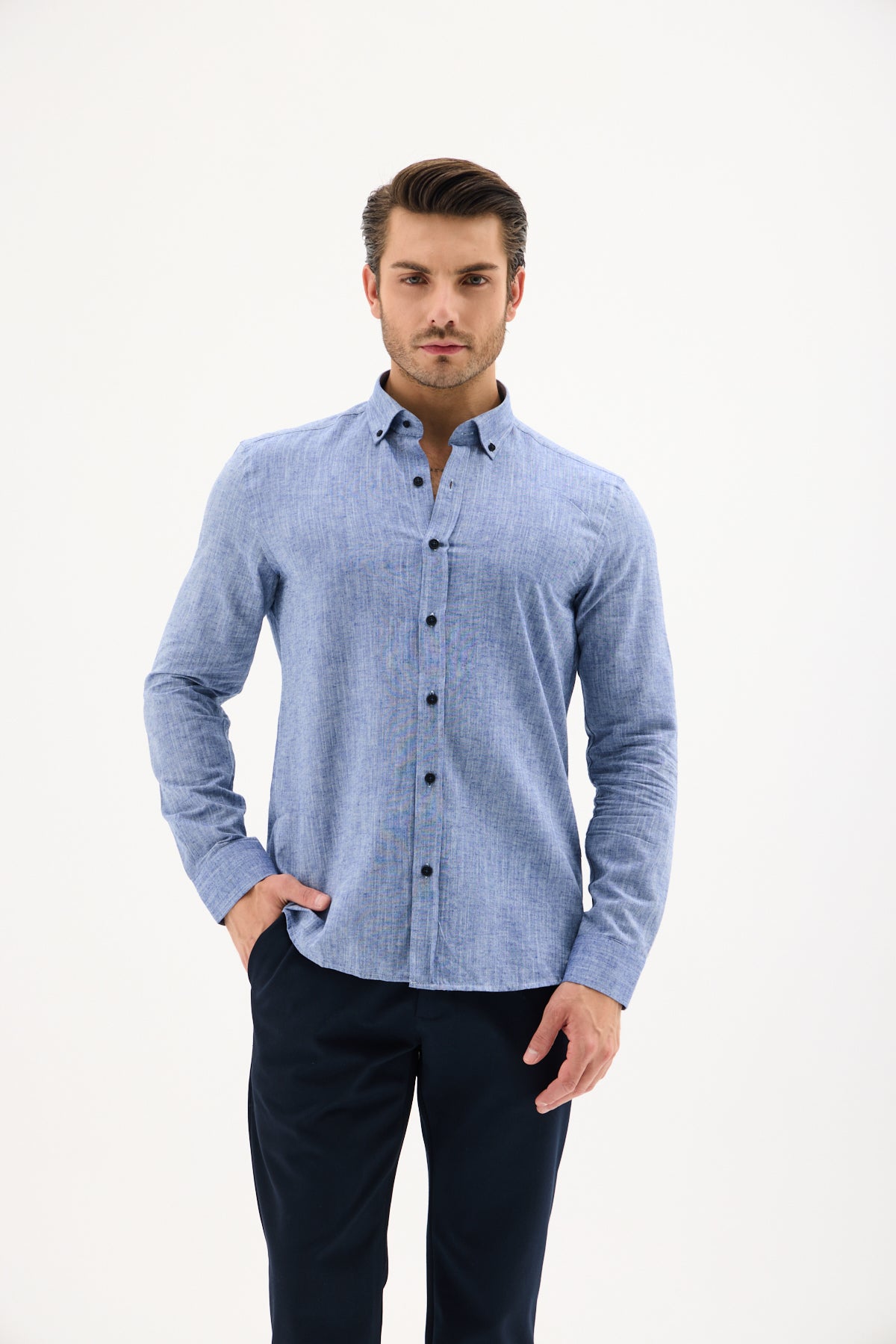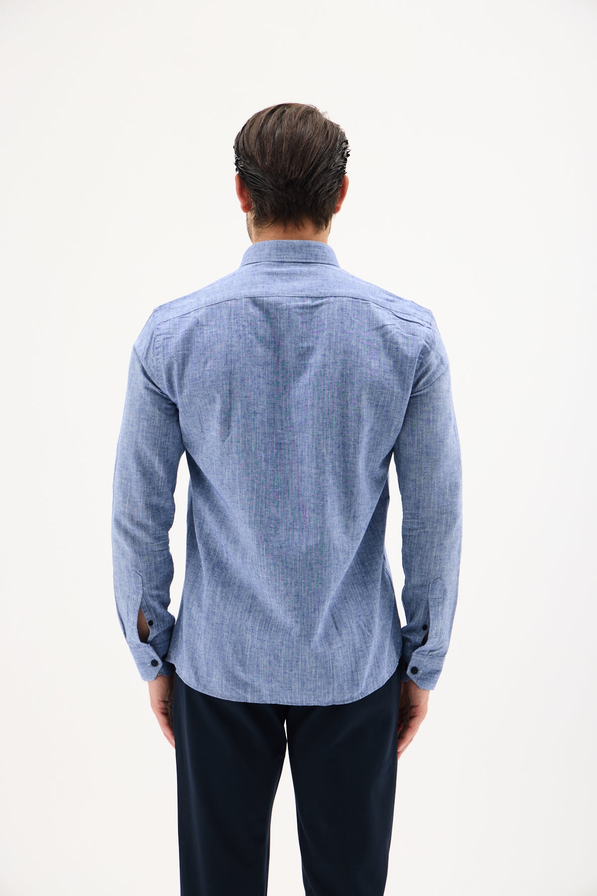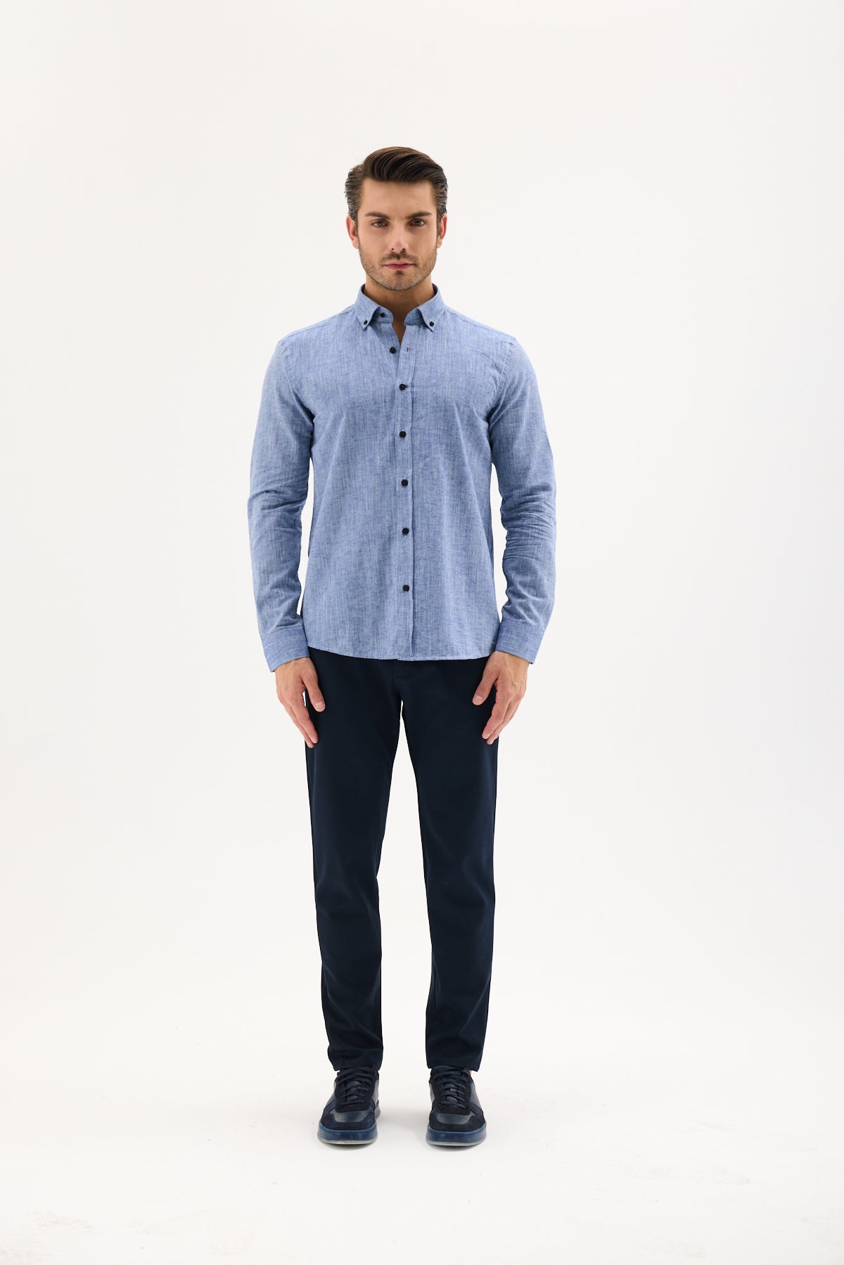 Keten Pamuk Slim Fit Lacivert Erkek Gömlek