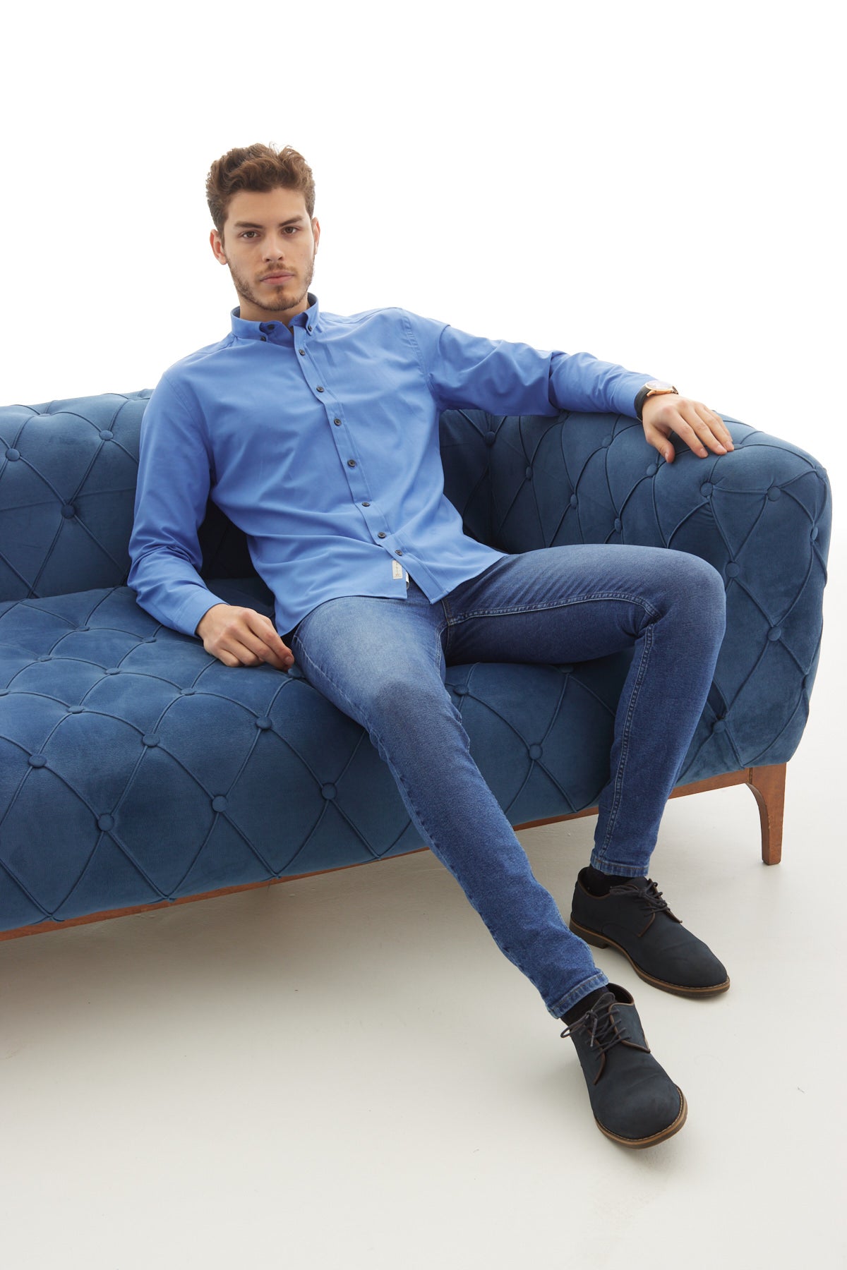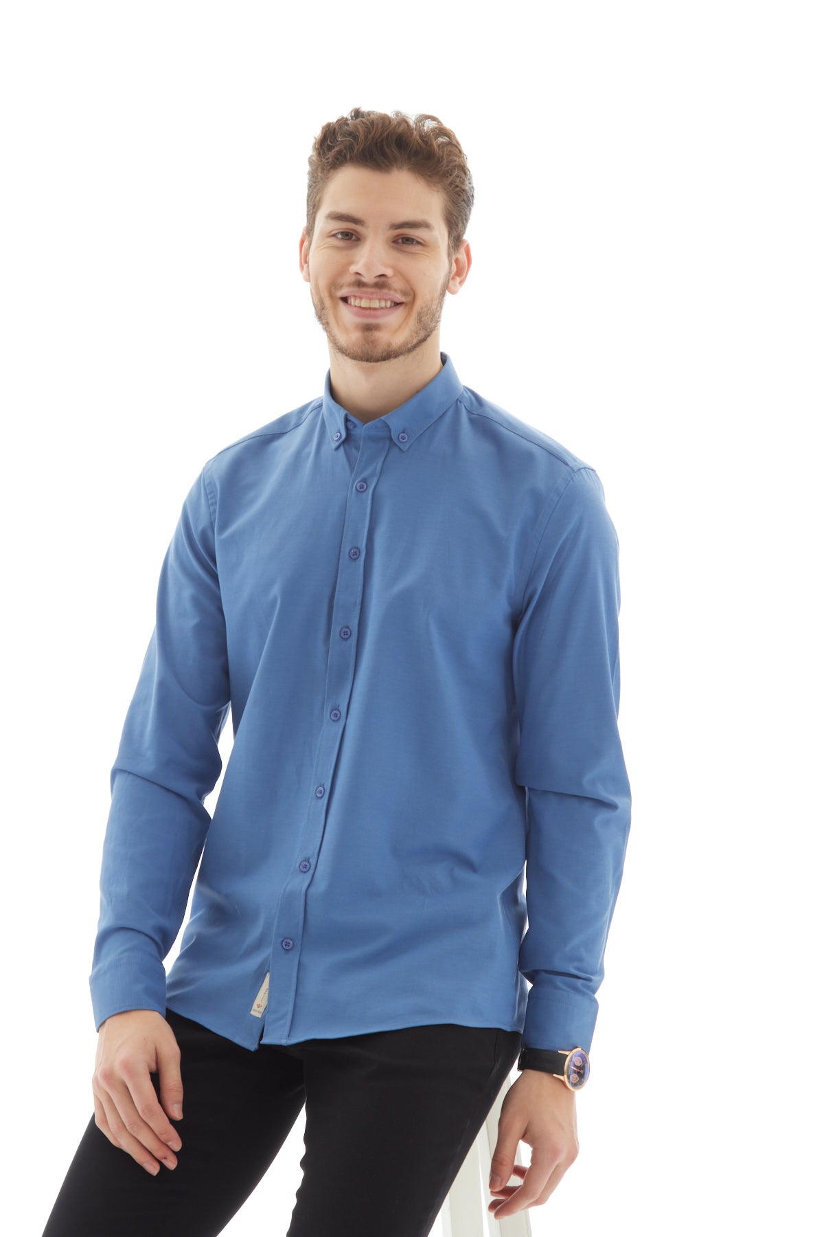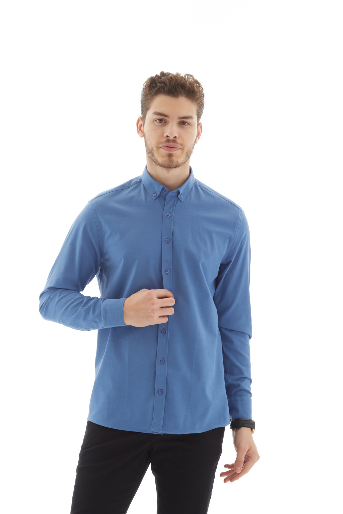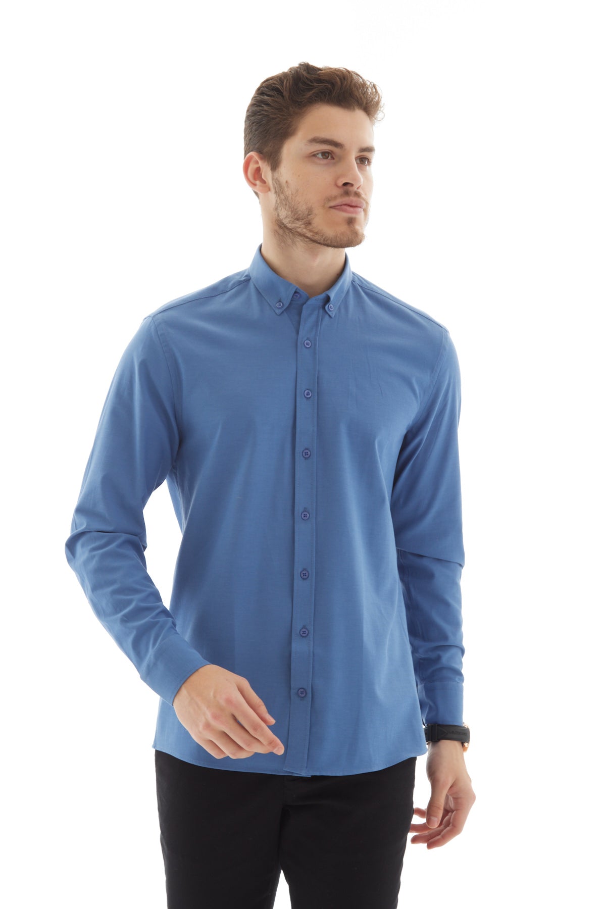 Oxford Slim Fit İndigo Erkek Gömlek