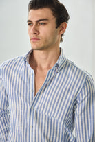 %100 Pamuk Keten Görünümlü Slim Fit Lacivert Erkek Gömlek