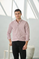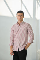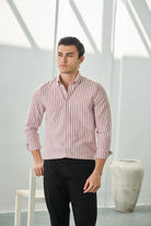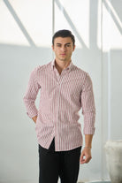 %100 Pamuk Keten Görünümlü Slim Fit Bordo Erkek Gömlek