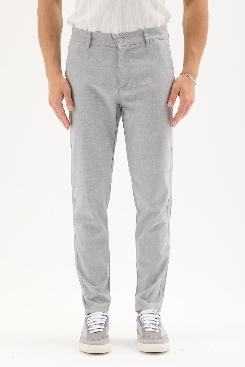 Gri Klasik Bel Elastan Chino Erkek Pantolon