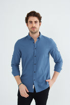 %100 Pamuk Keten Görünümlü Slim Fit Flam İndigo Erkek Gömlek
