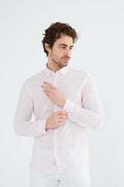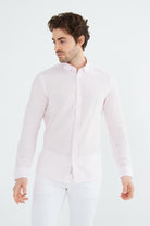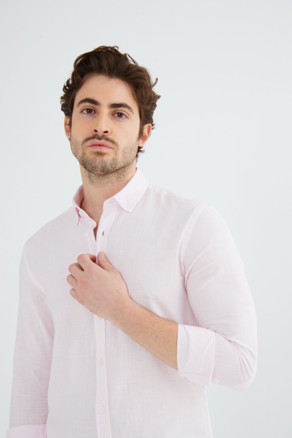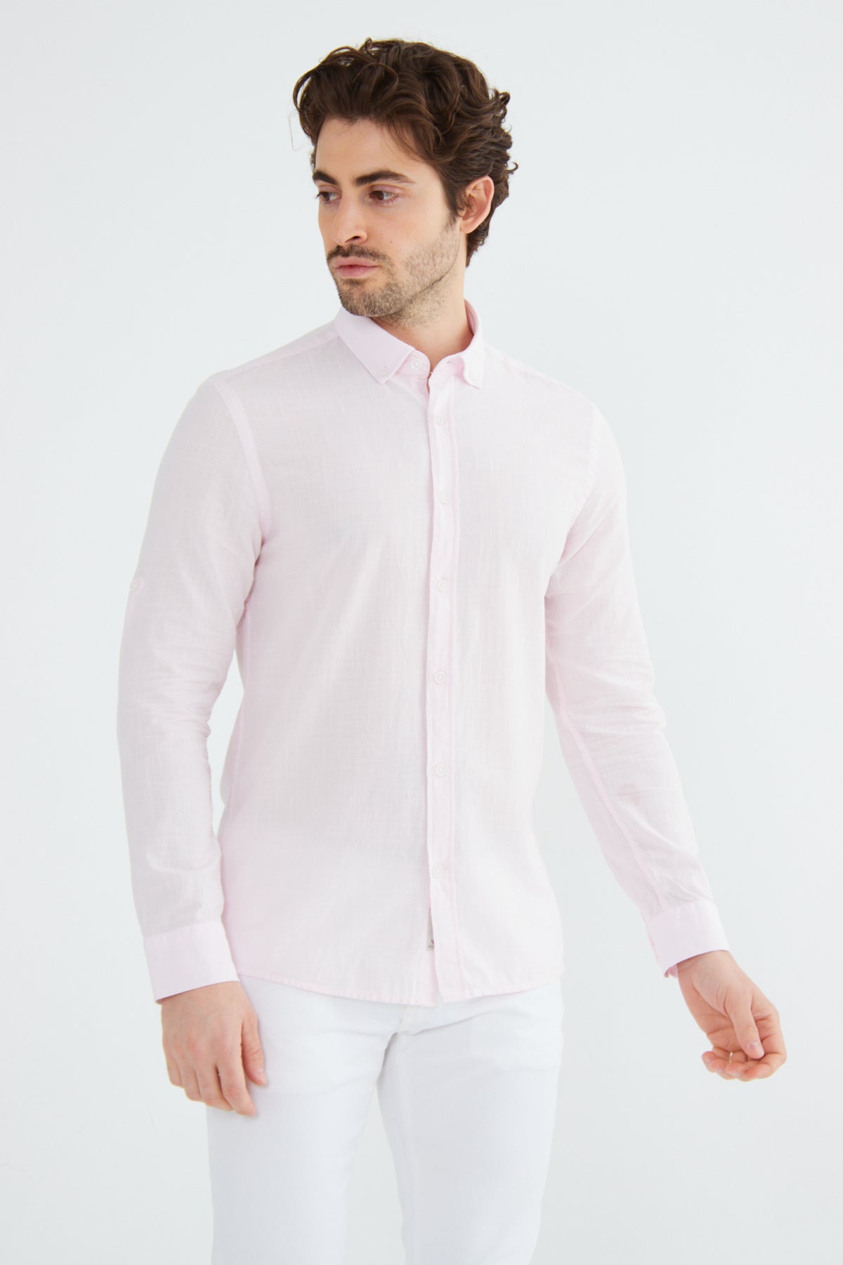 %100 Pamuk Keten Görünümlü Slim Fit Flam Pembe Erkek Gömlek