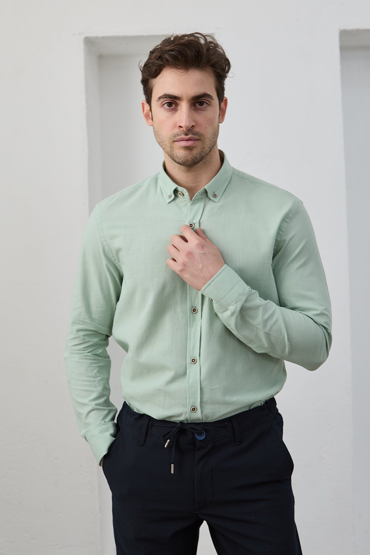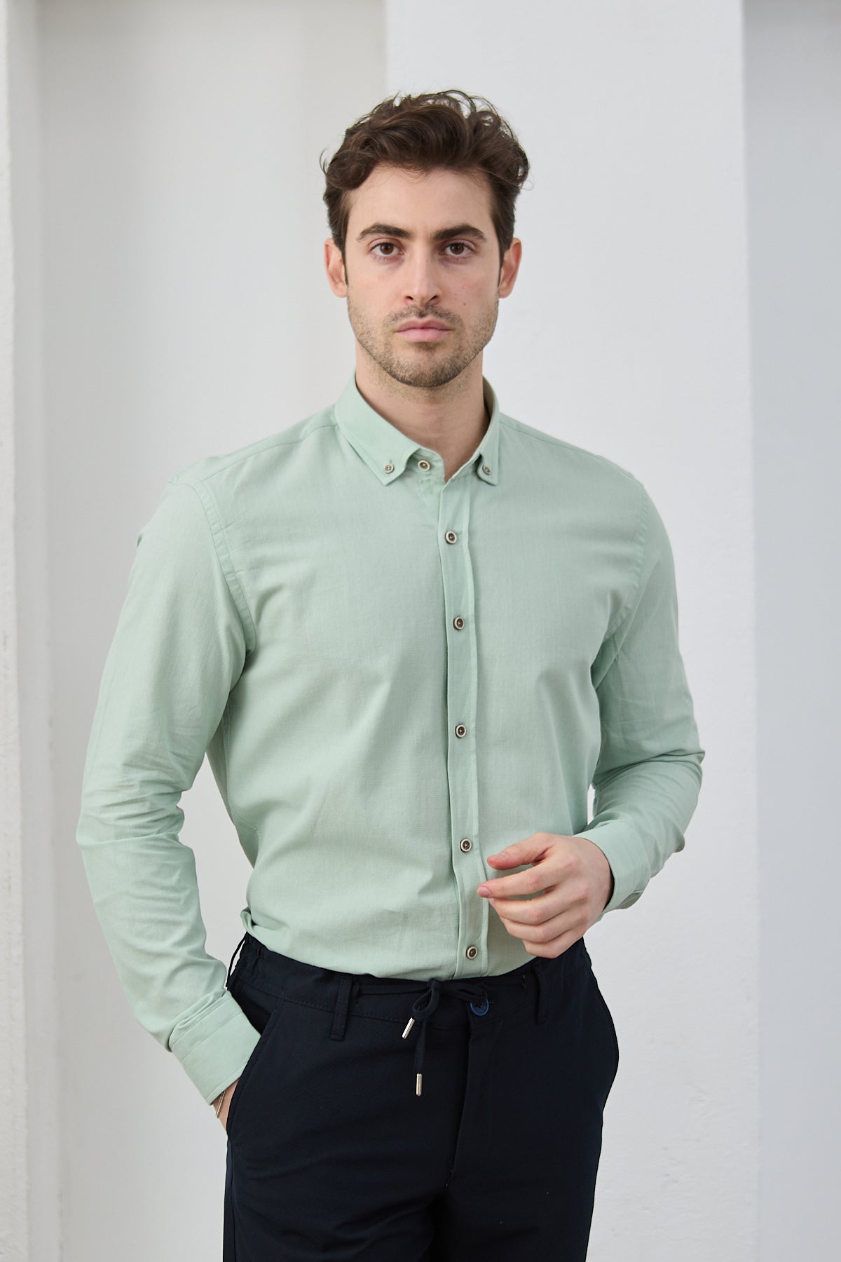 %100 pamuk kumaşıyla nefes alır, gün boyu ferahlık sağlar. Yumuşak dokusu ve slim kesimiyle hem günlük hem iş kombinlerinde zamansız bir parça olarak dolabınızda yerini alır.