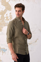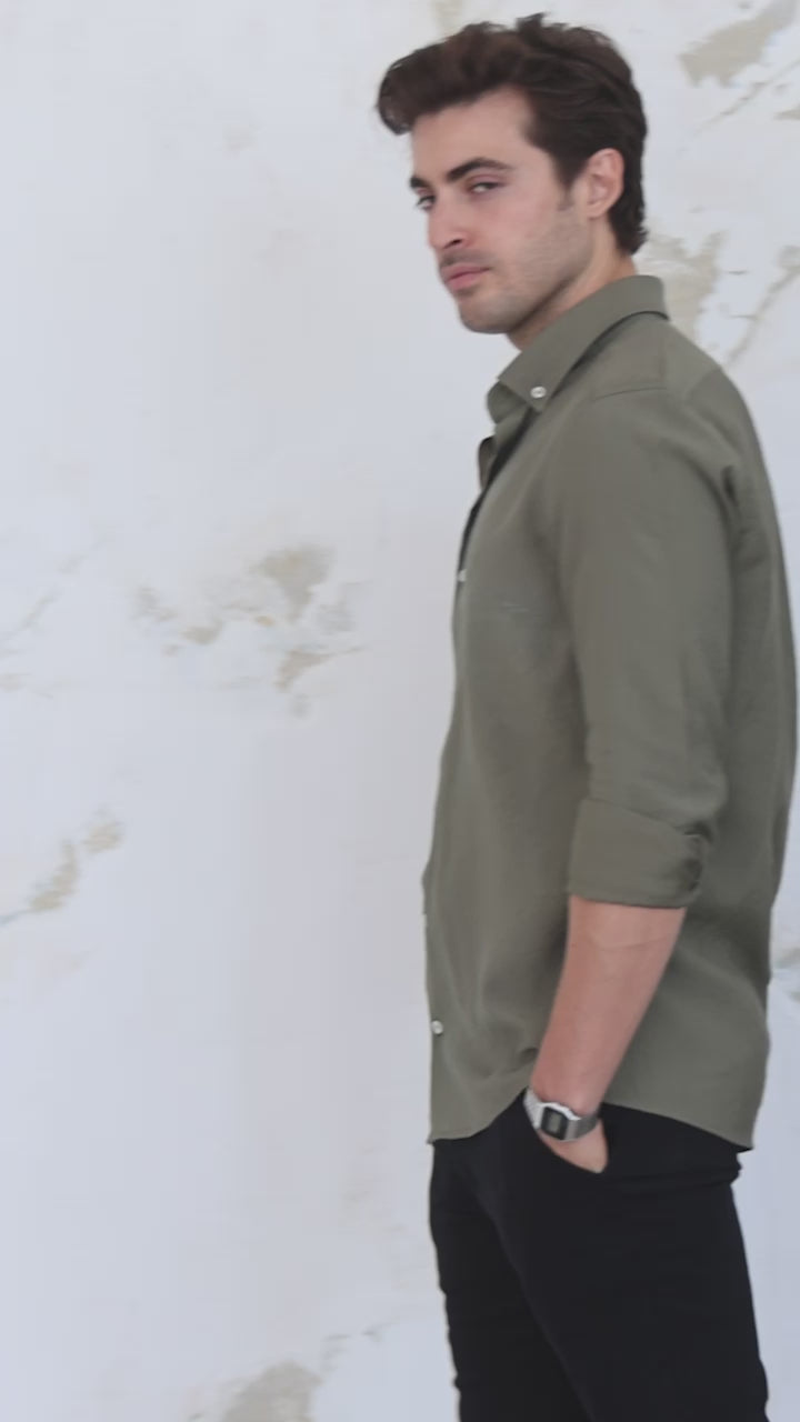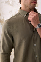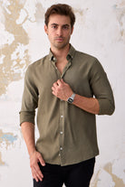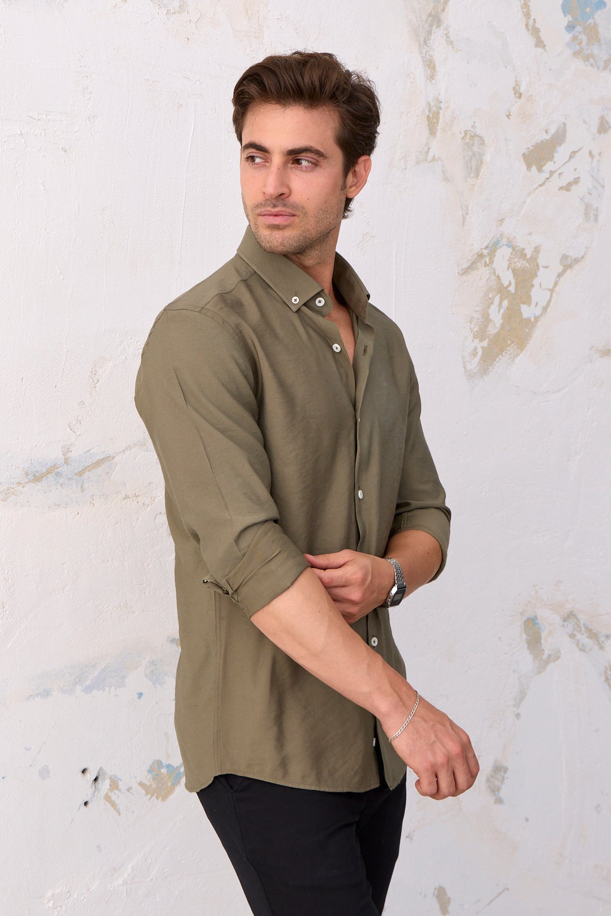 %100 Pamuk Modal Slim Fit Haki Erkek Gömlek