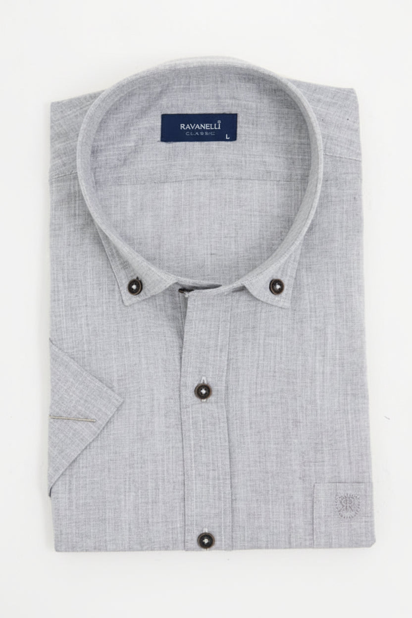 Açık Gri Kısa Kol Klasik Erkek Gömlek