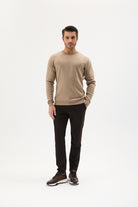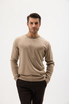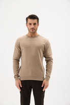Bej Bisiklet Yaka Pamuklu Triko Erkek Kazak