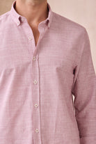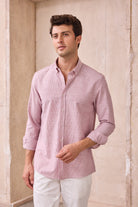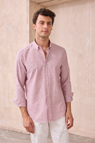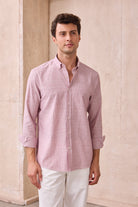 Giza %100 Pamuk Keten Görünümlü Slim Fit Kırmızı Sık Çizgili Erkek Gömlek