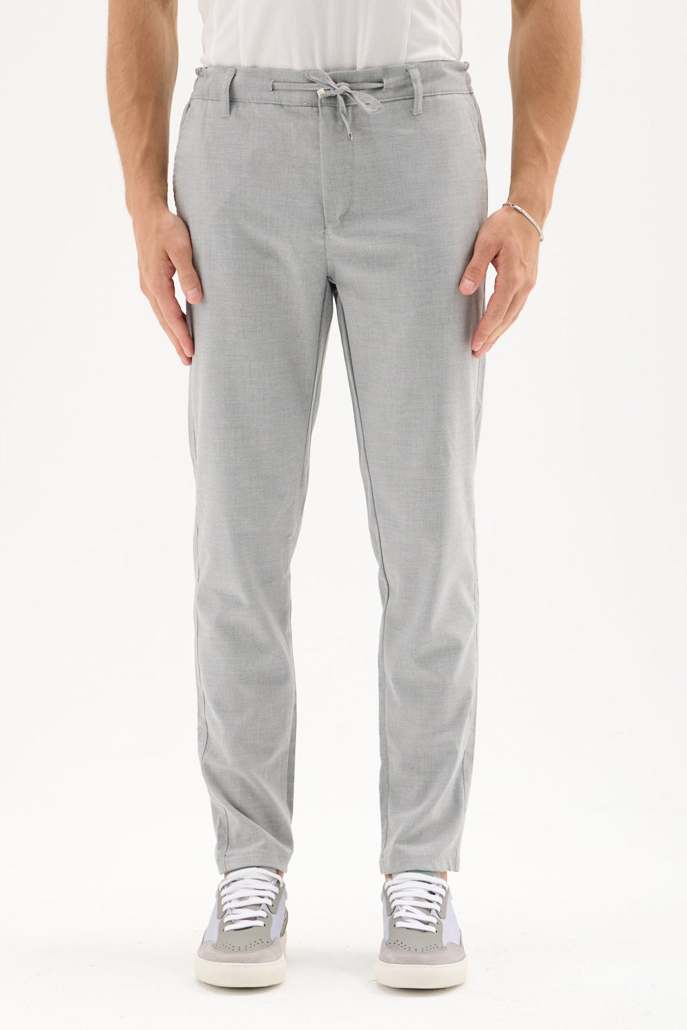 Gri Beli Lastikli Bağcıklı Jogger Erkek Pantolon