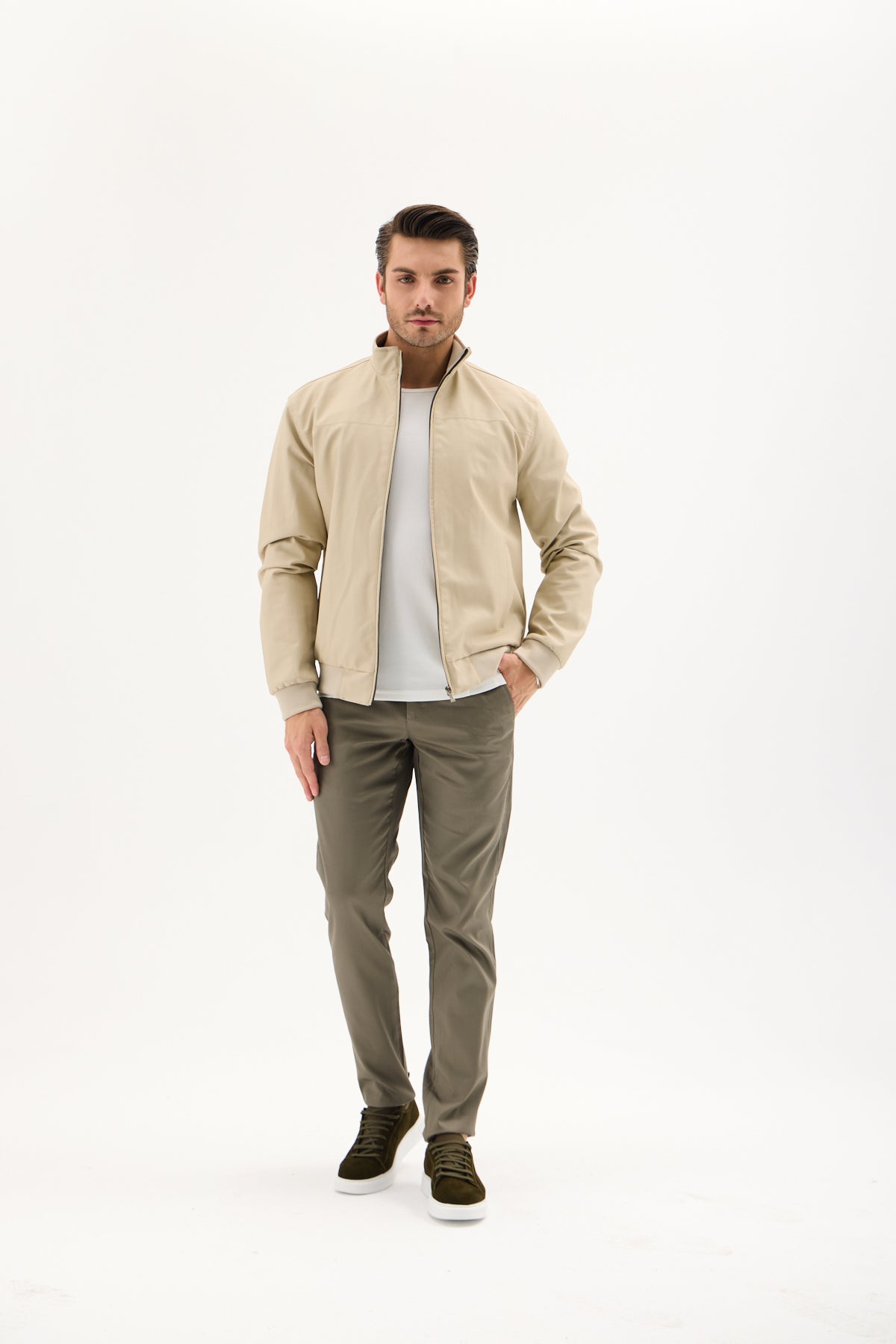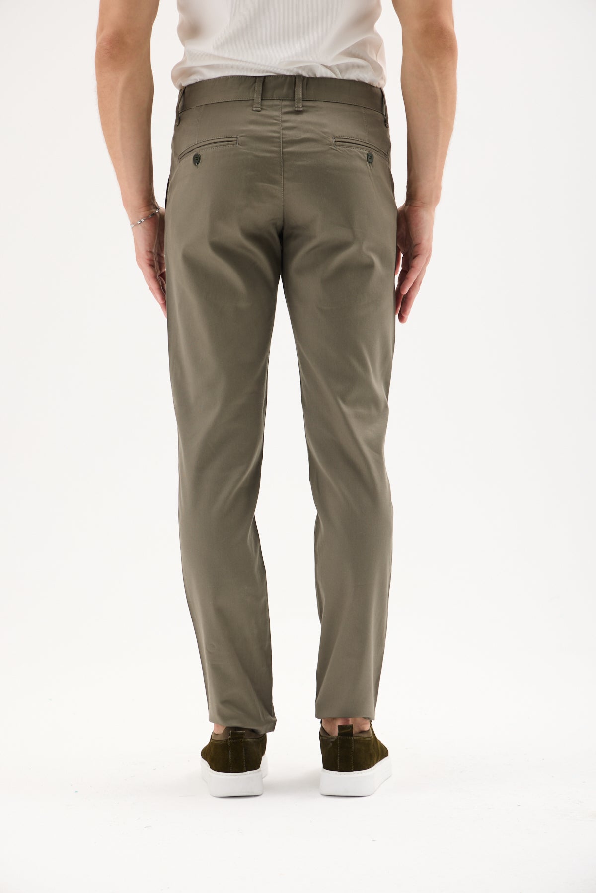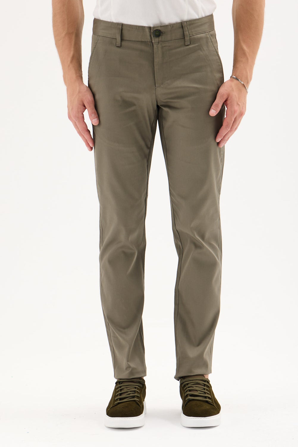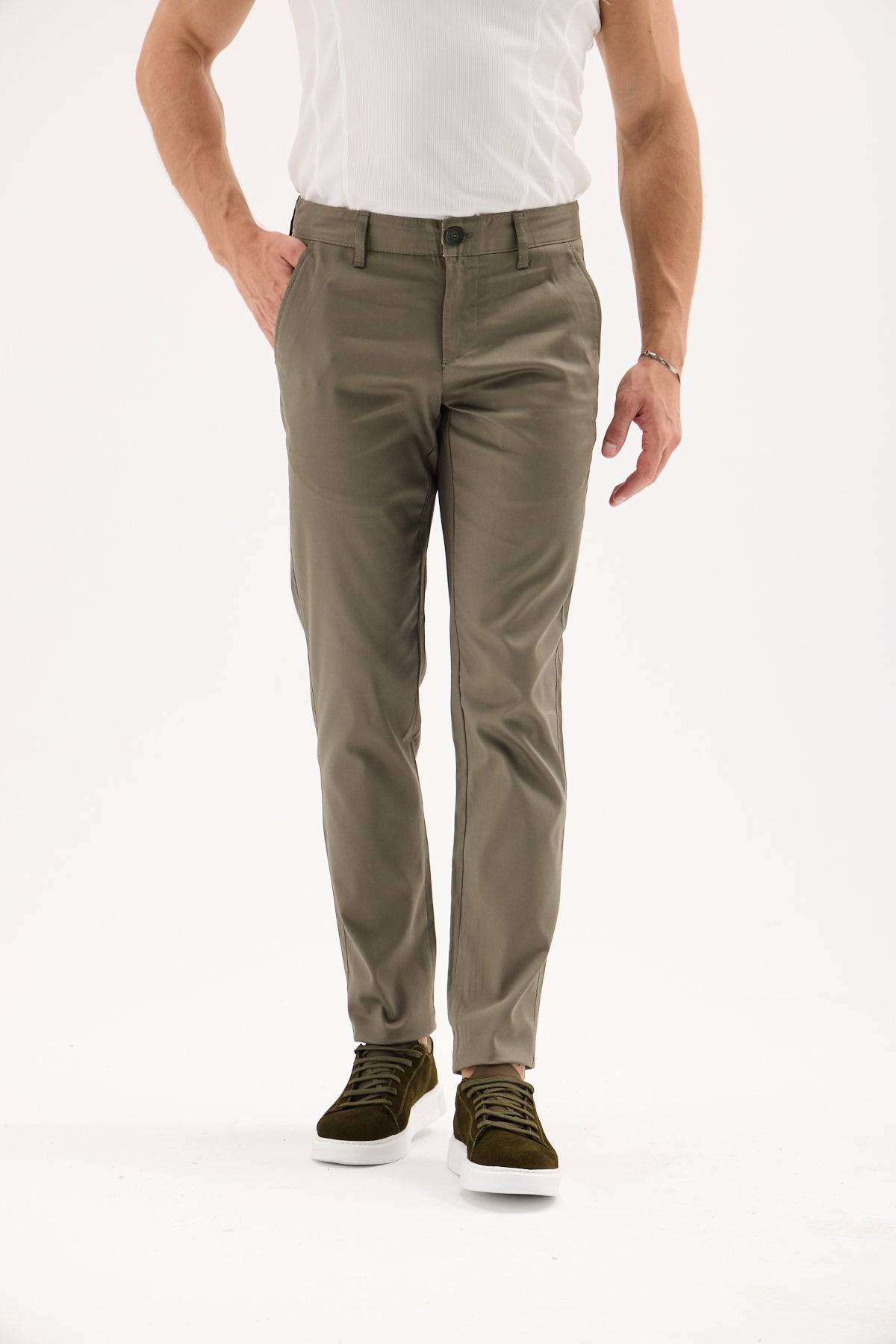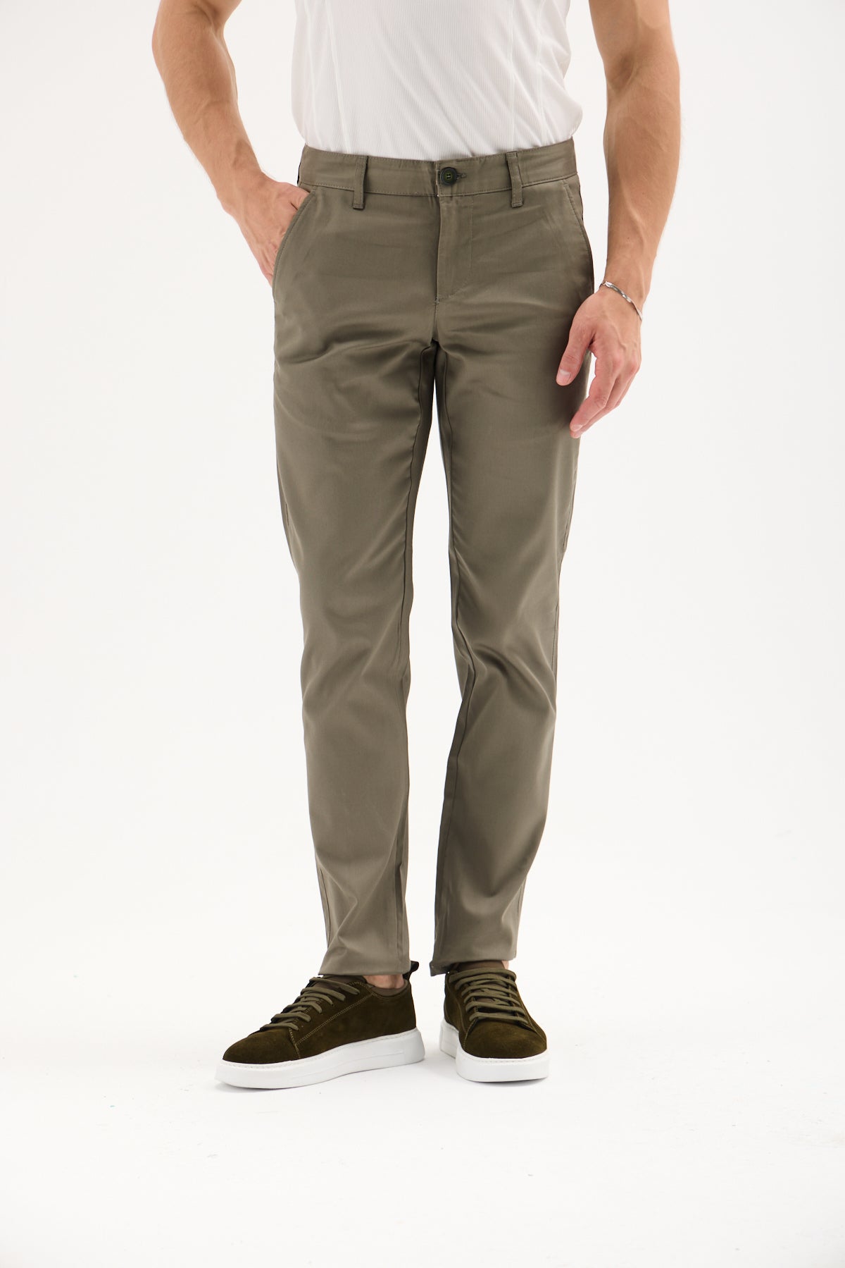 Haki Kemerli Bel Armürlü Kumaş Erkek Pantolon