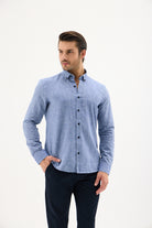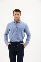 Keten Pamuk Slim Fit Lacivert Erkek Gömlek