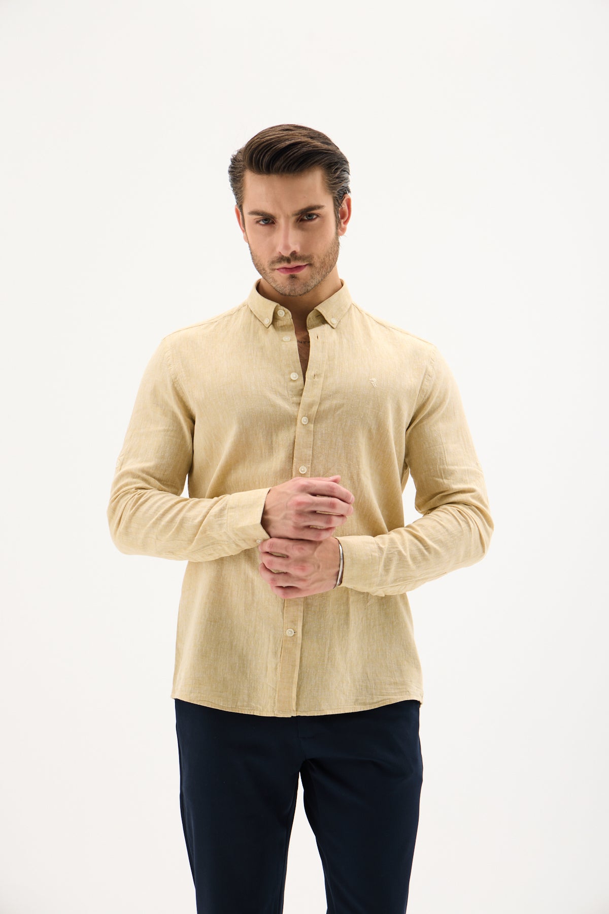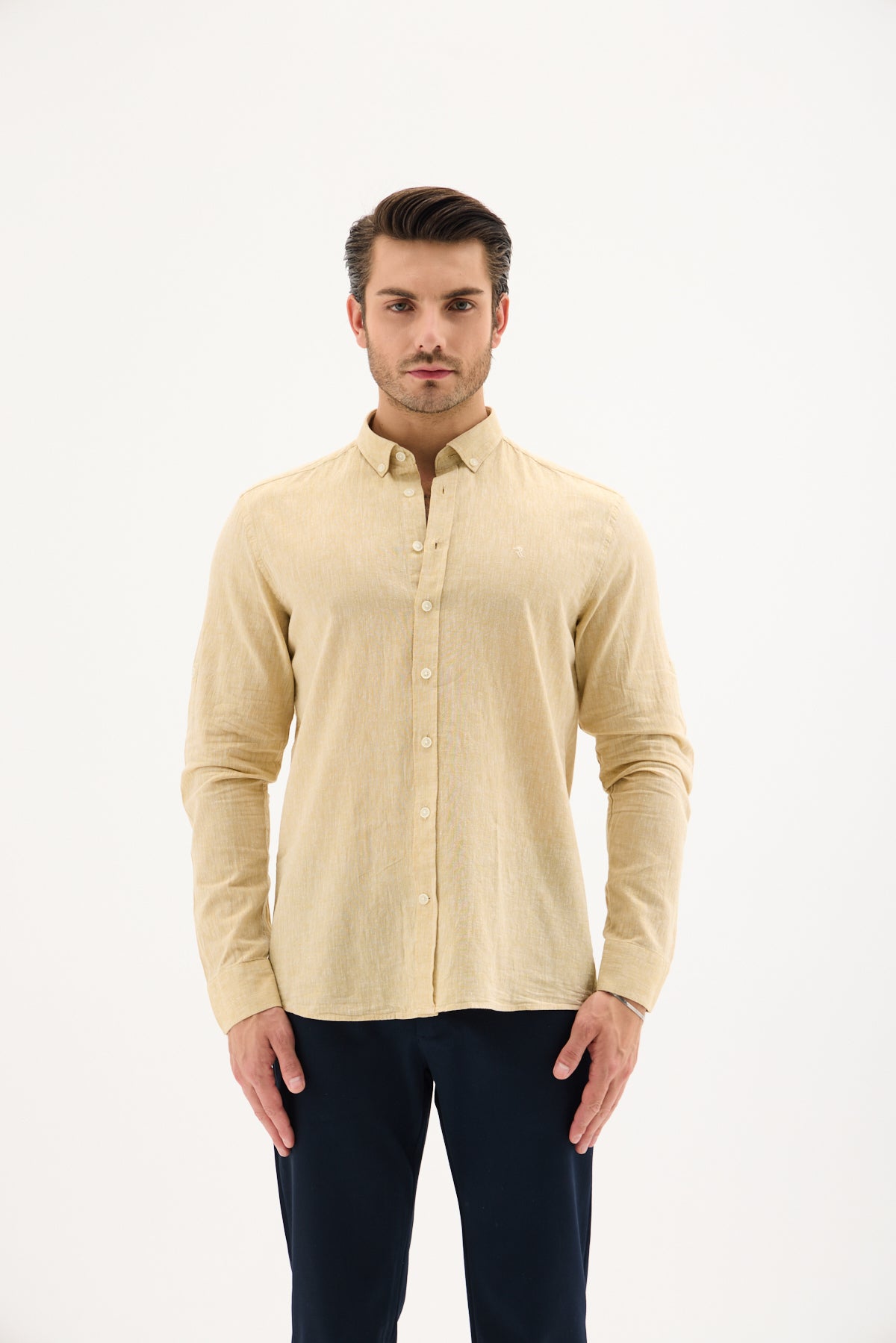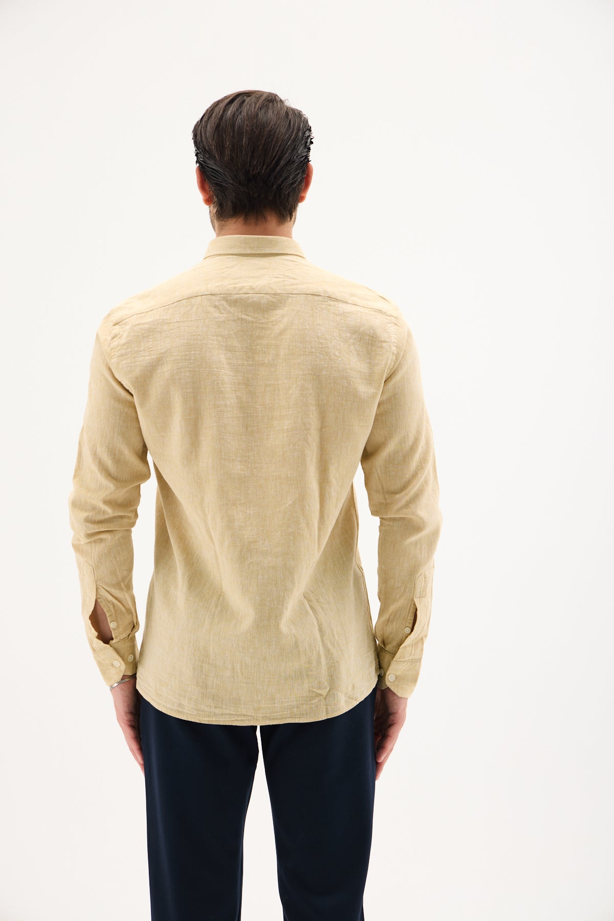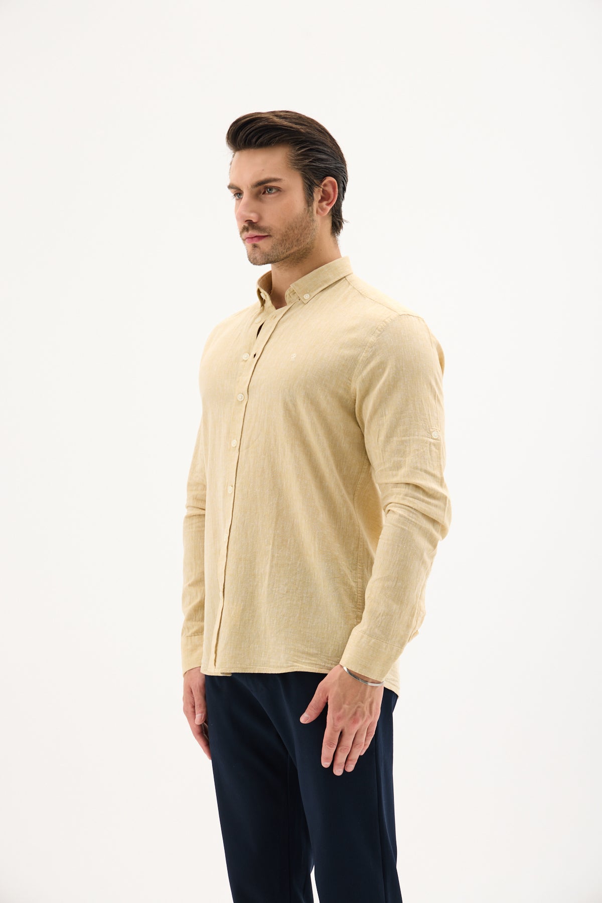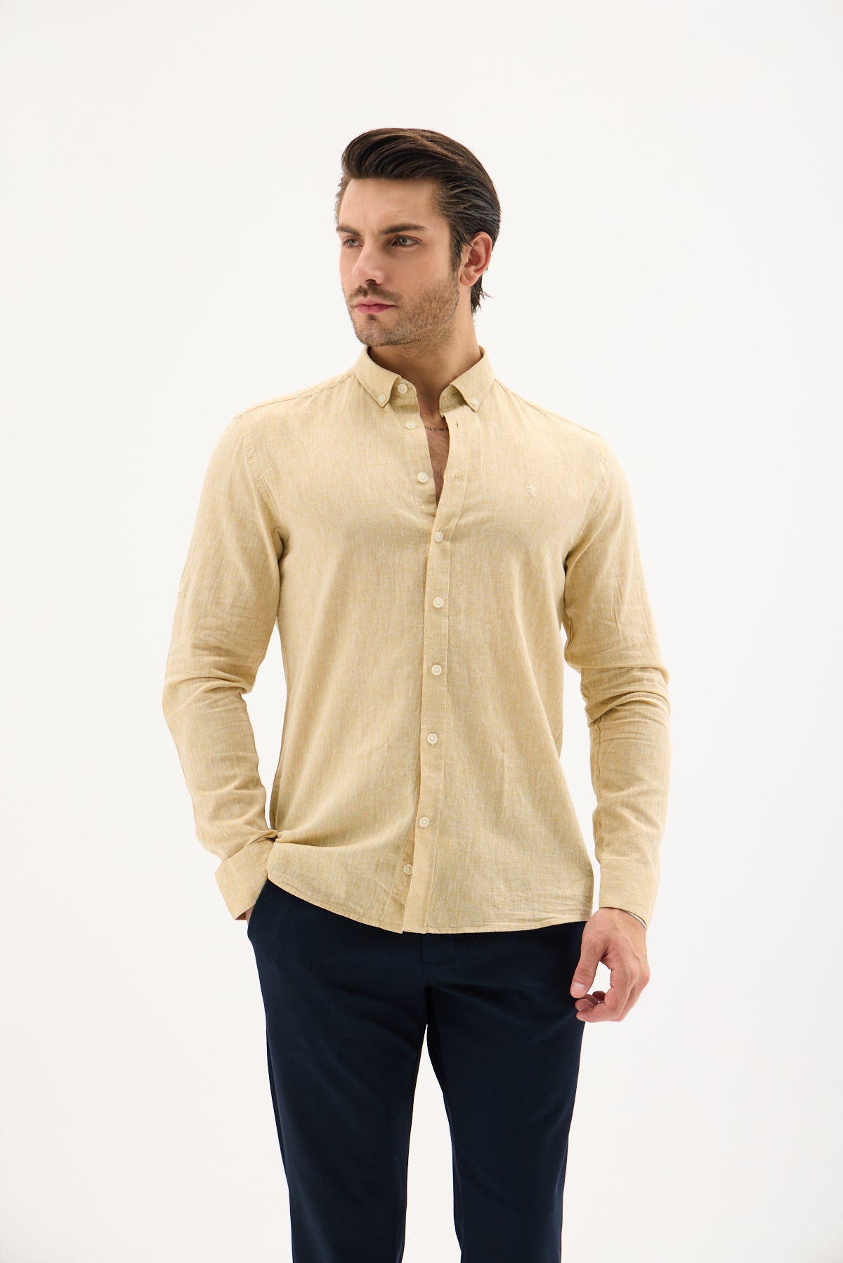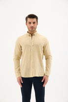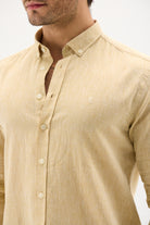 Keten Pamuk Slim Fit Pastel Sarı Erkek Gömlek