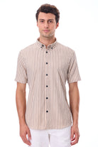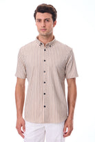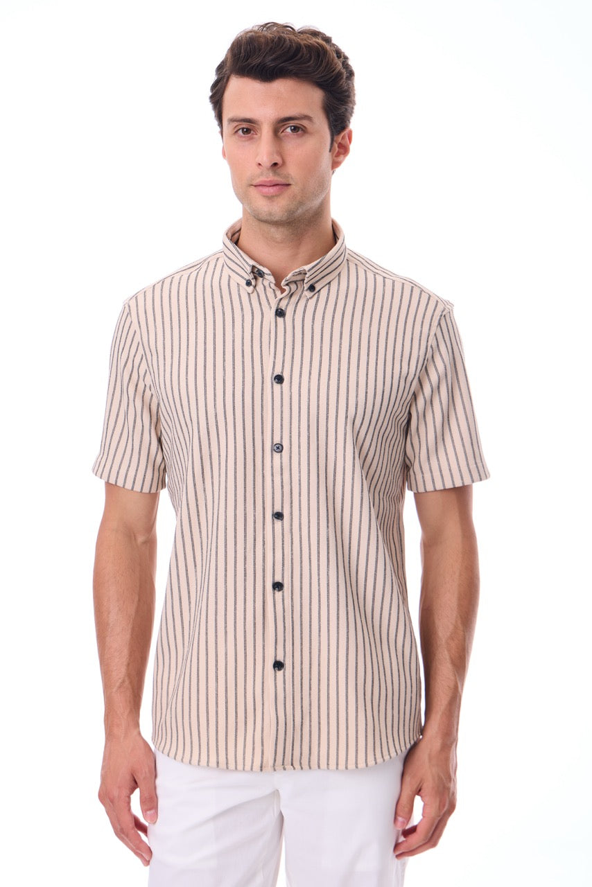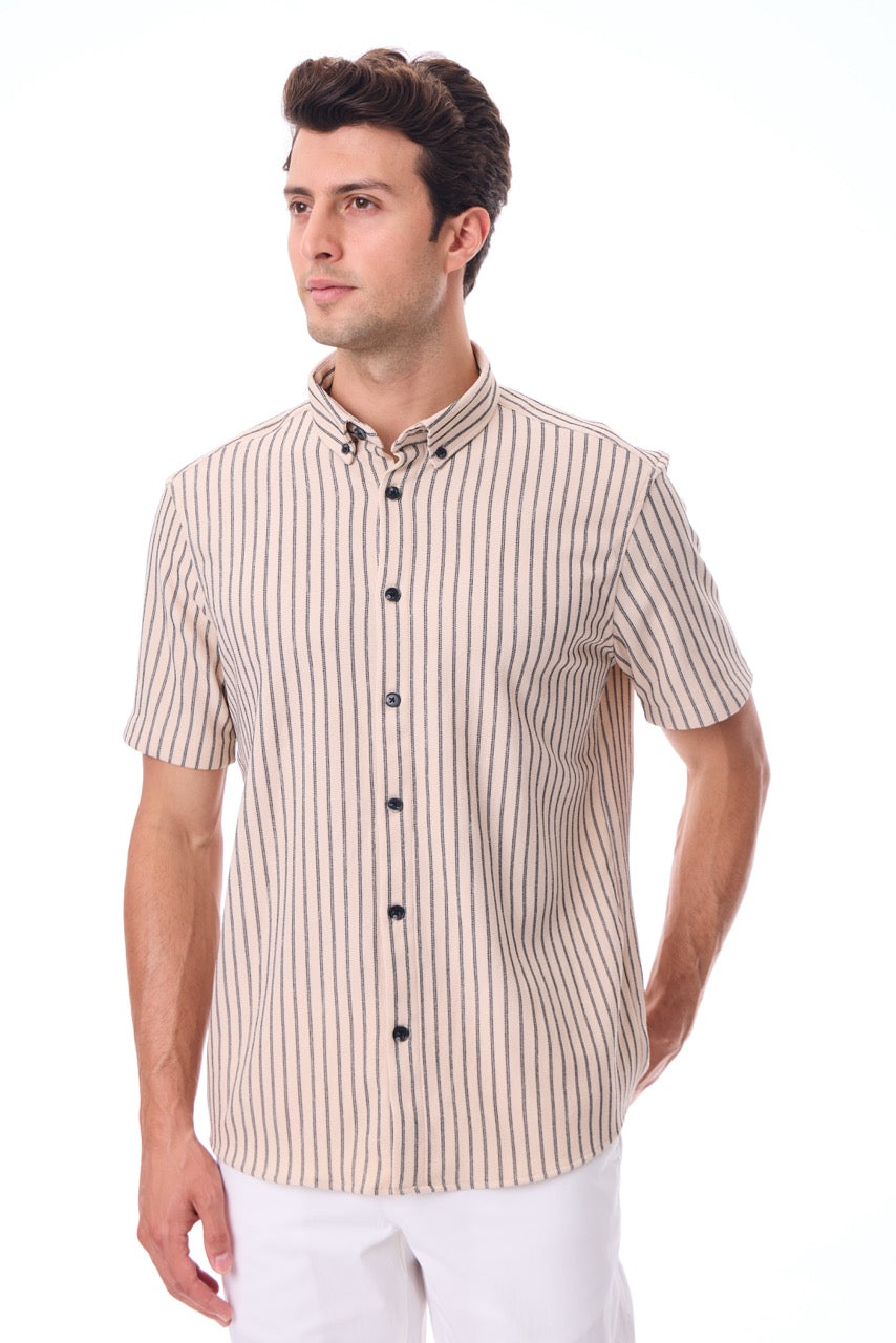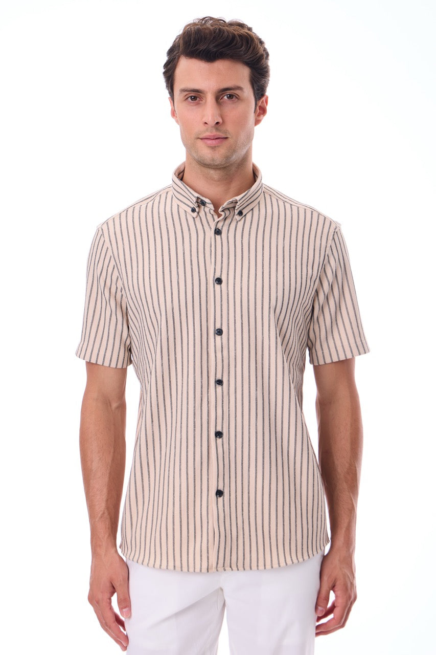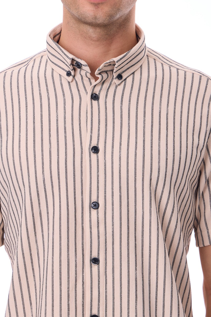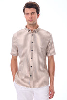 Kısa Kollu Baskılı Örme Slim Fit Bej Erkek Gömlek