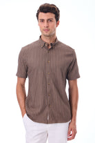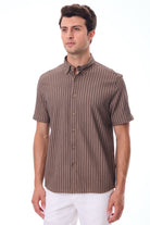 Kısa Kollu Baskılı Örme Slim Fit Kahve Erkek Gömlek