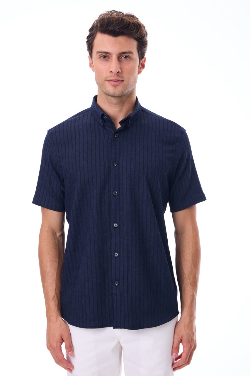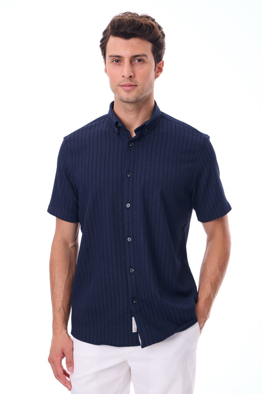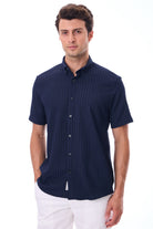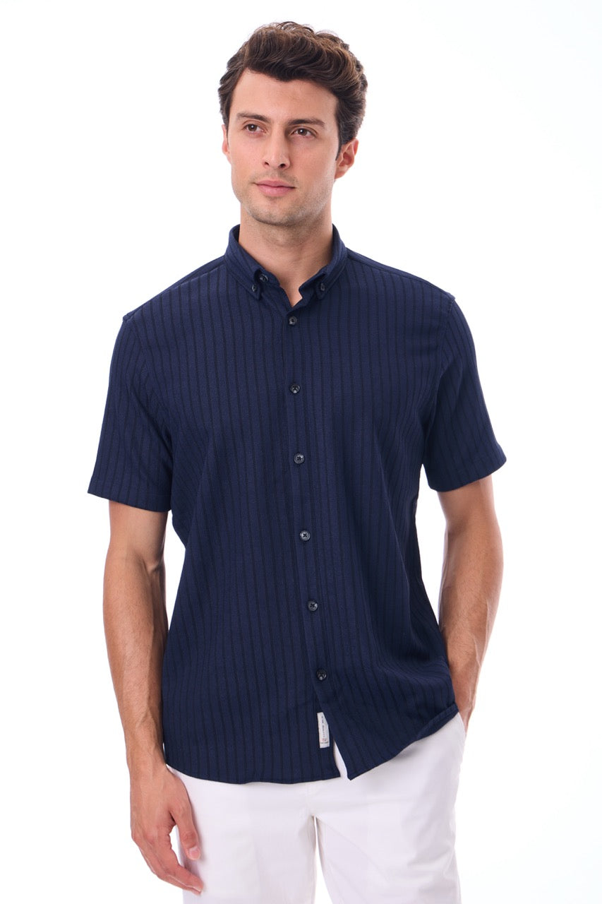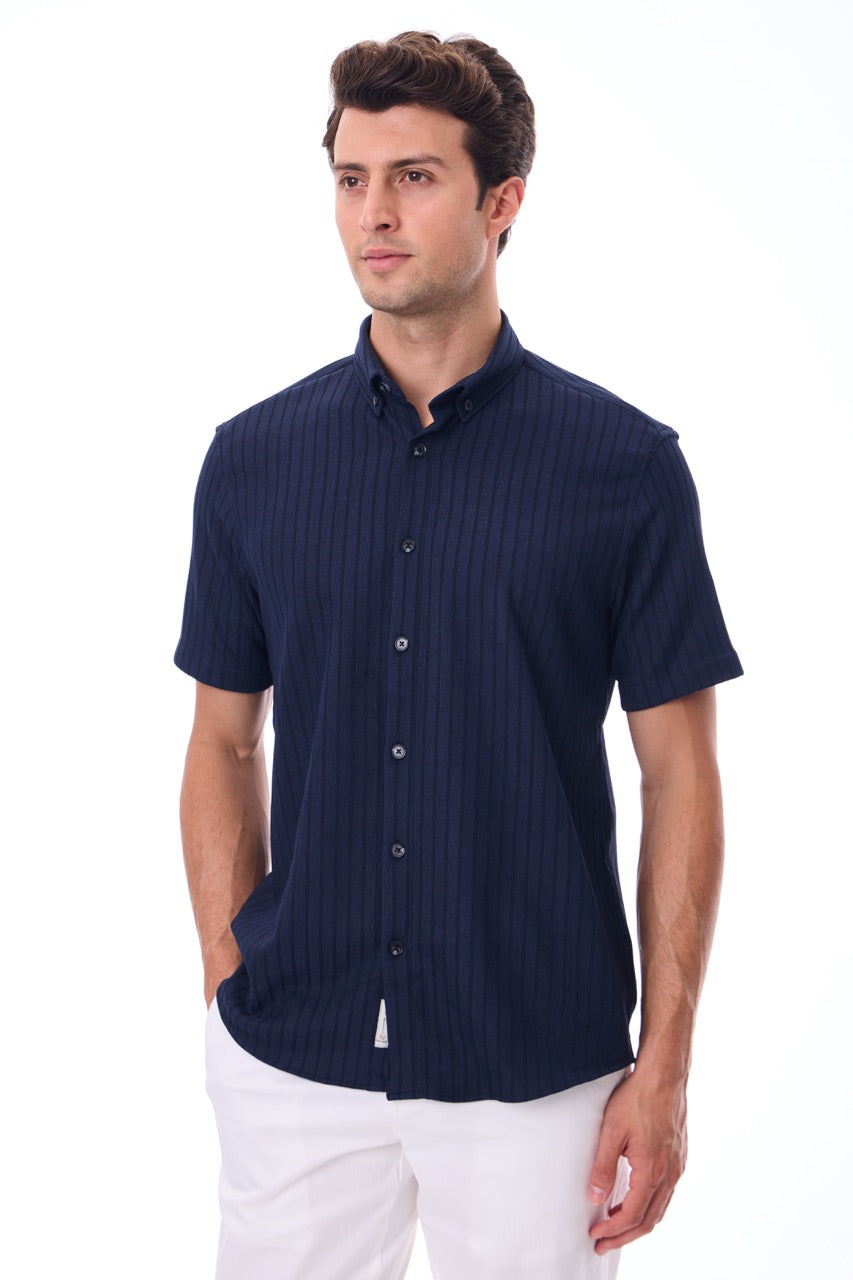 Kısa Kollu Baskılı Örme Slim Fit Laci Erkek Gömlek