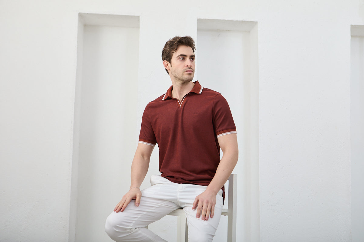 Kısa Kollu Örme Slim Fit Bordo Erkek Polo Tişört