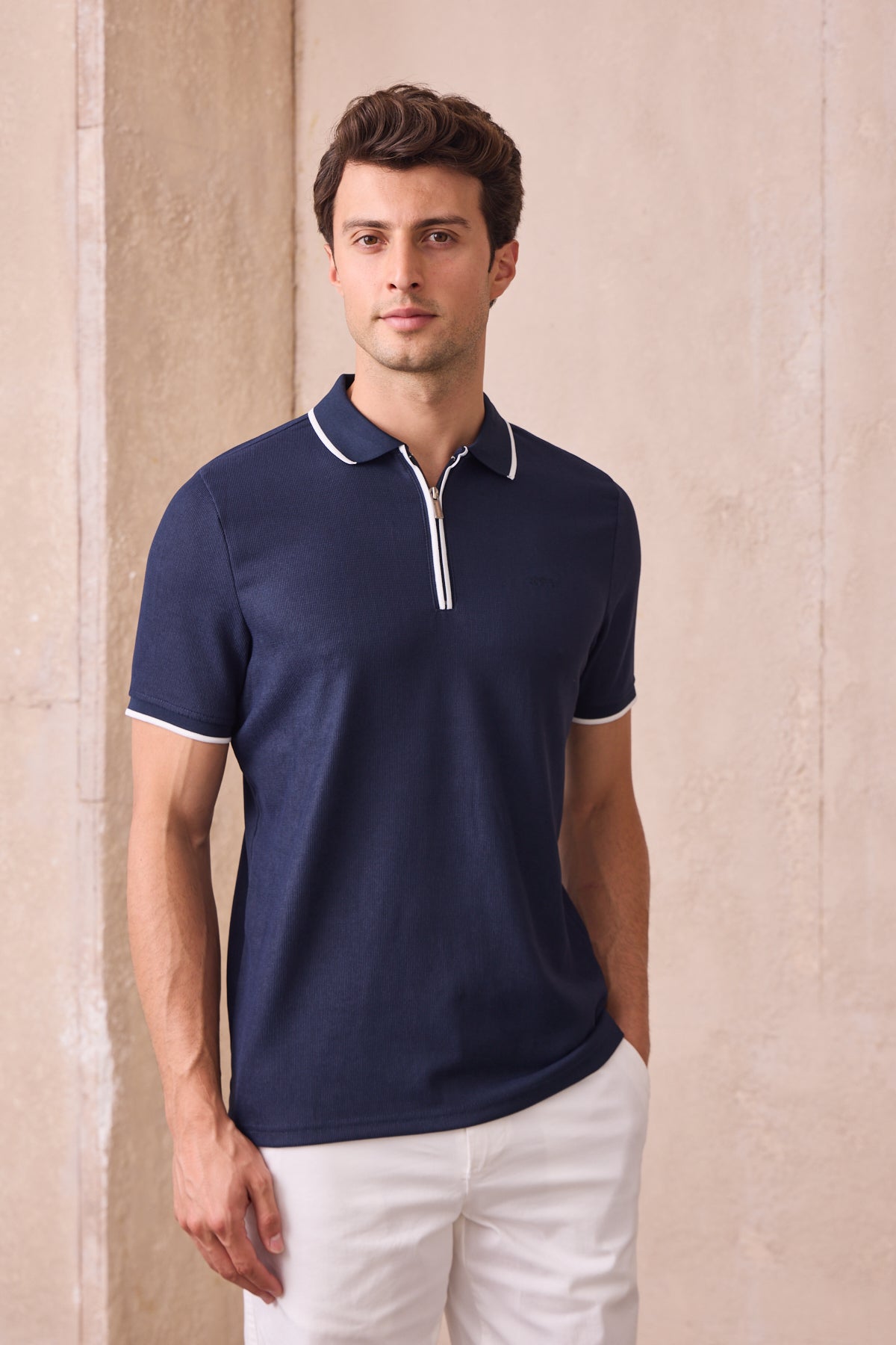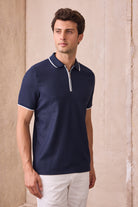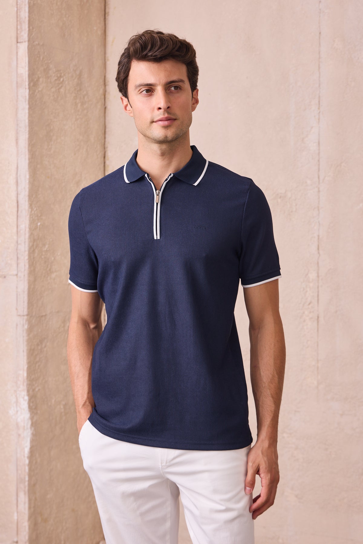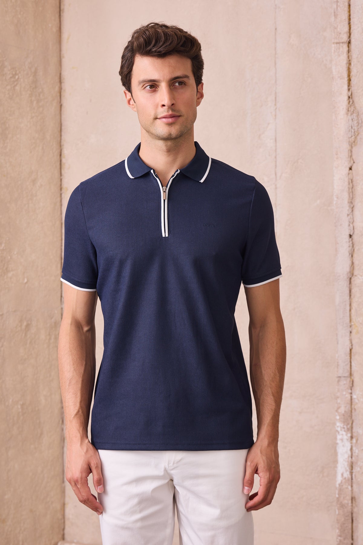 Kısa Kollu Örme Slim Fit Fermuarlı Laci Erkek Polo Tişört