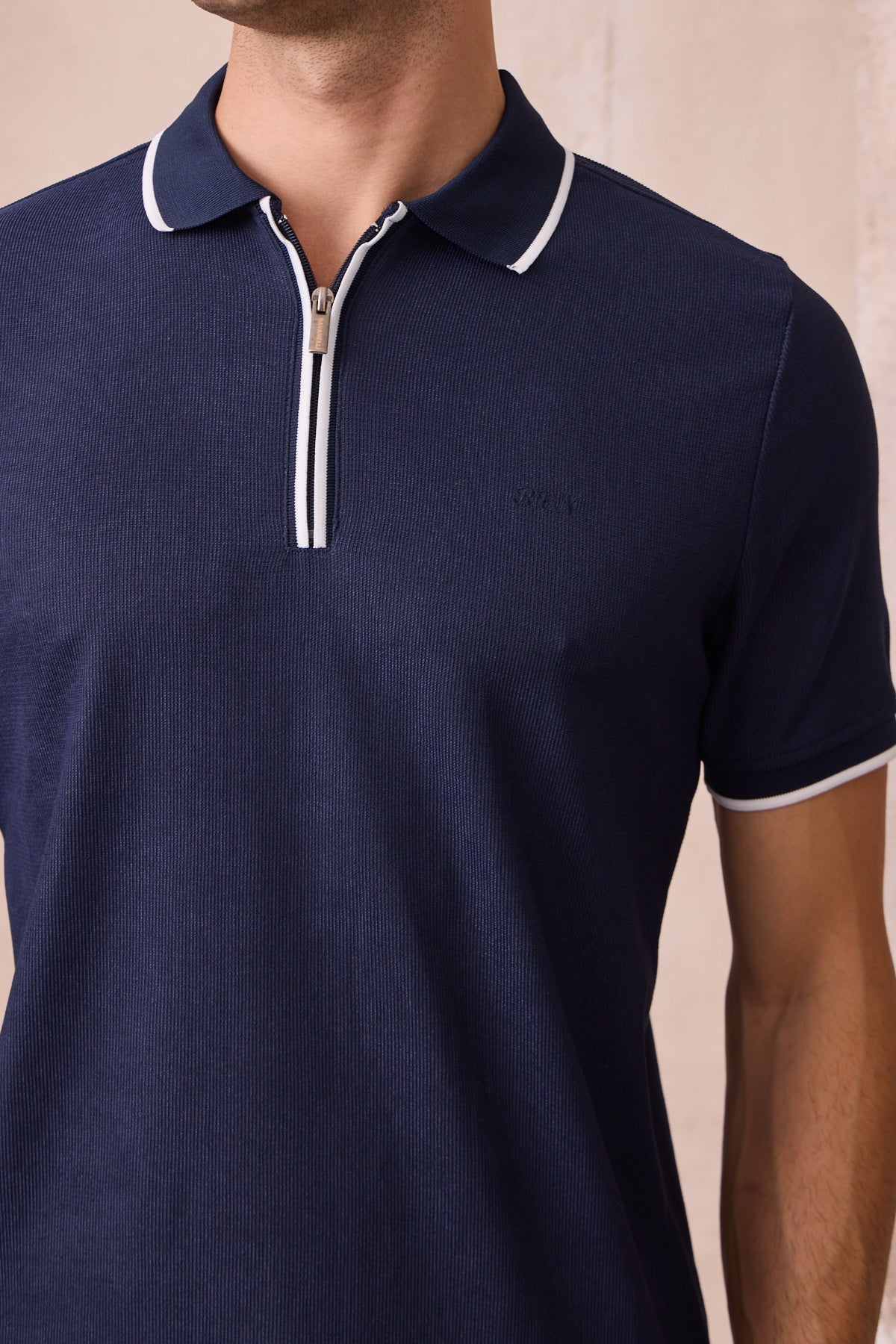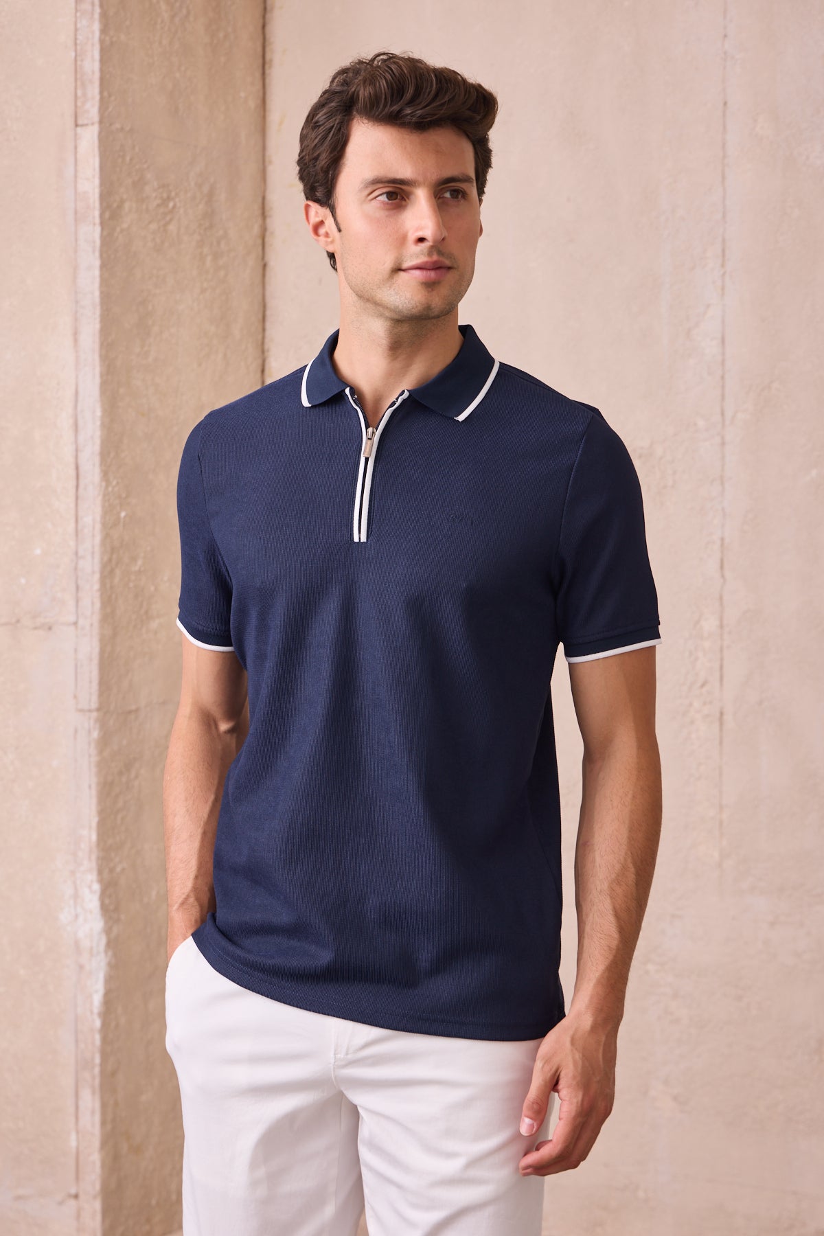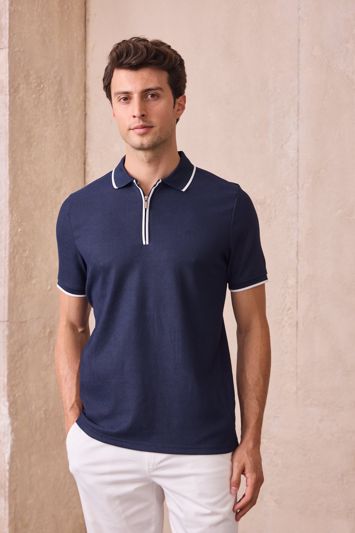 Kısa Kollu Örme Slim Fit Fermuarlı Laci Erkek Polo Tişört
