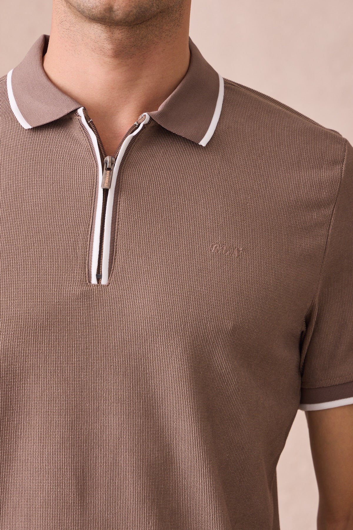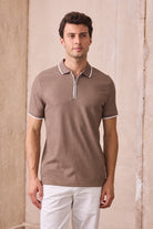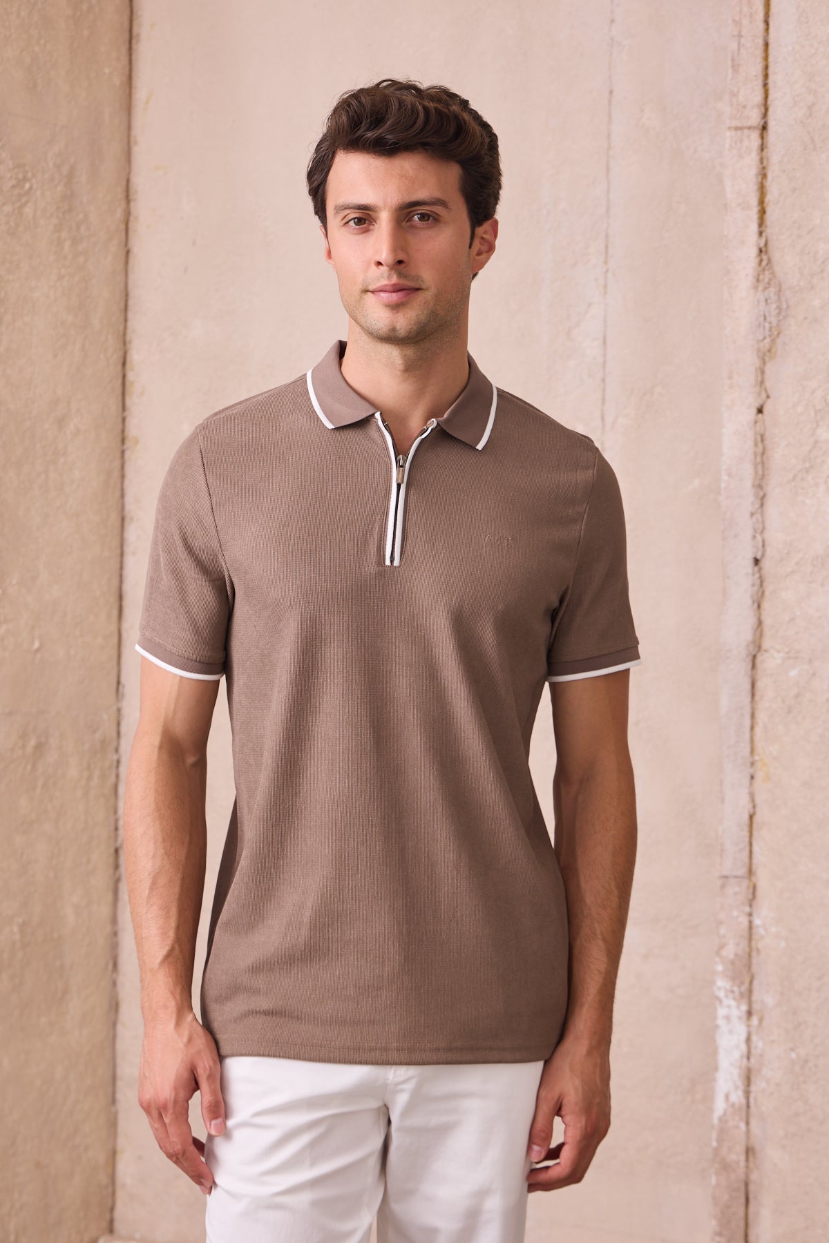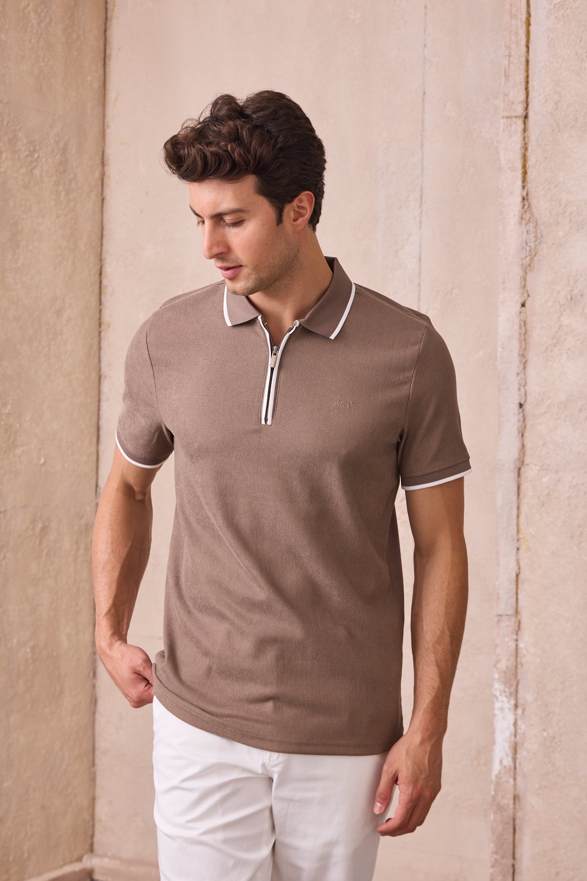 Kısa Kollu Örme Slim Fit Fermuarlı Toprak Erkek Polo Tişört