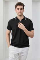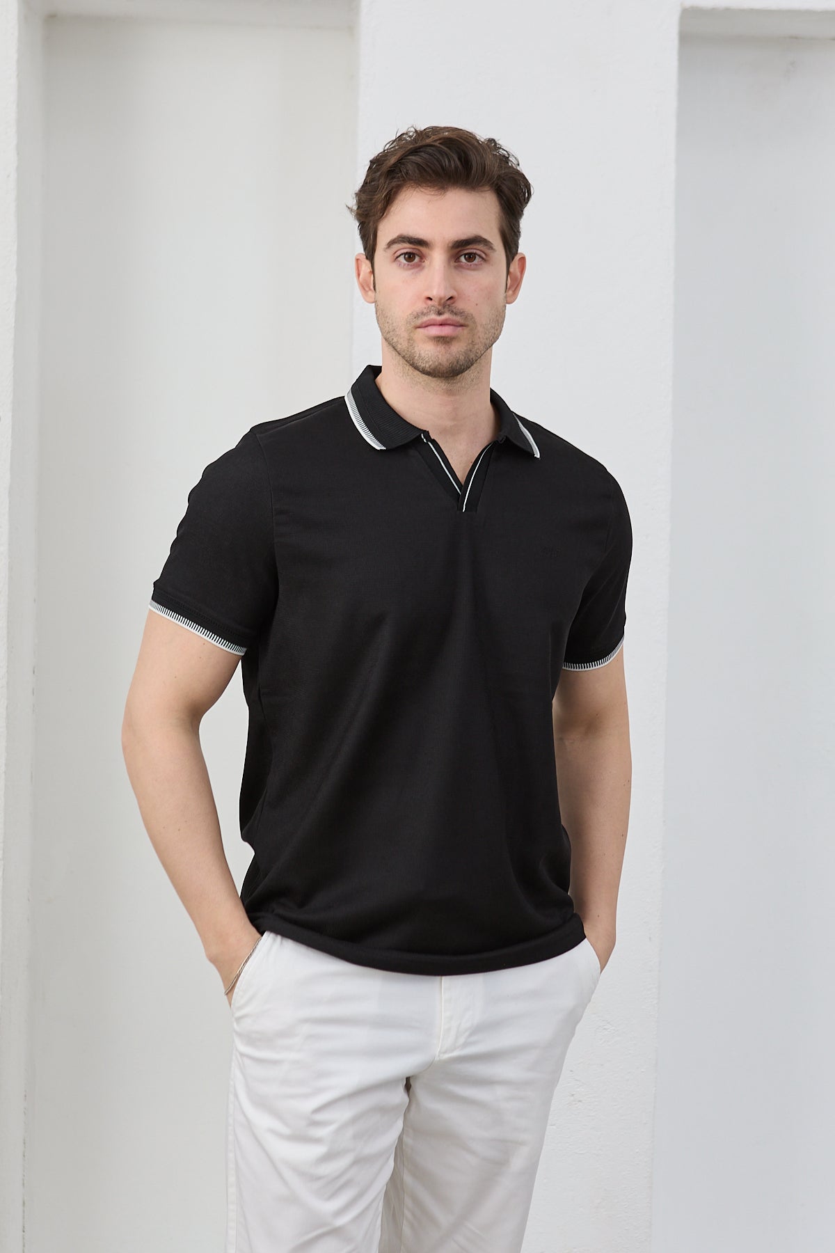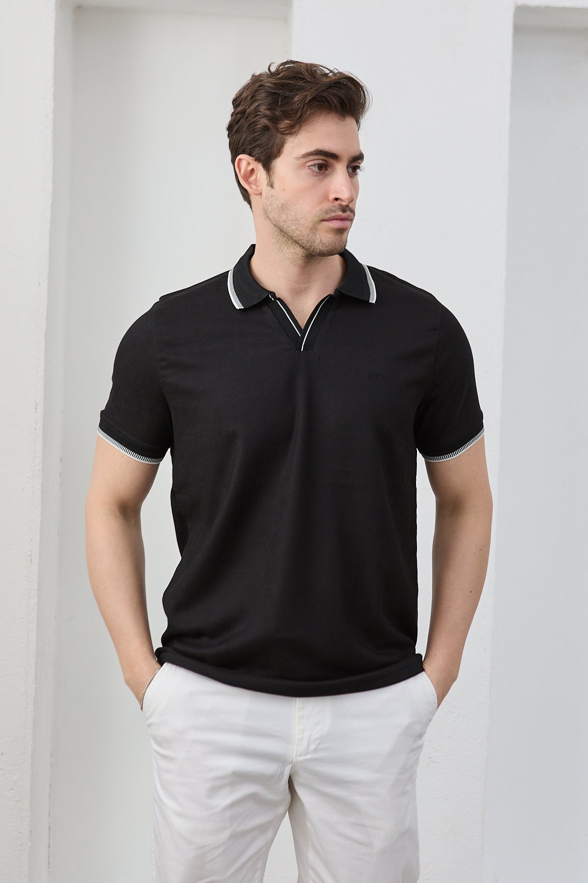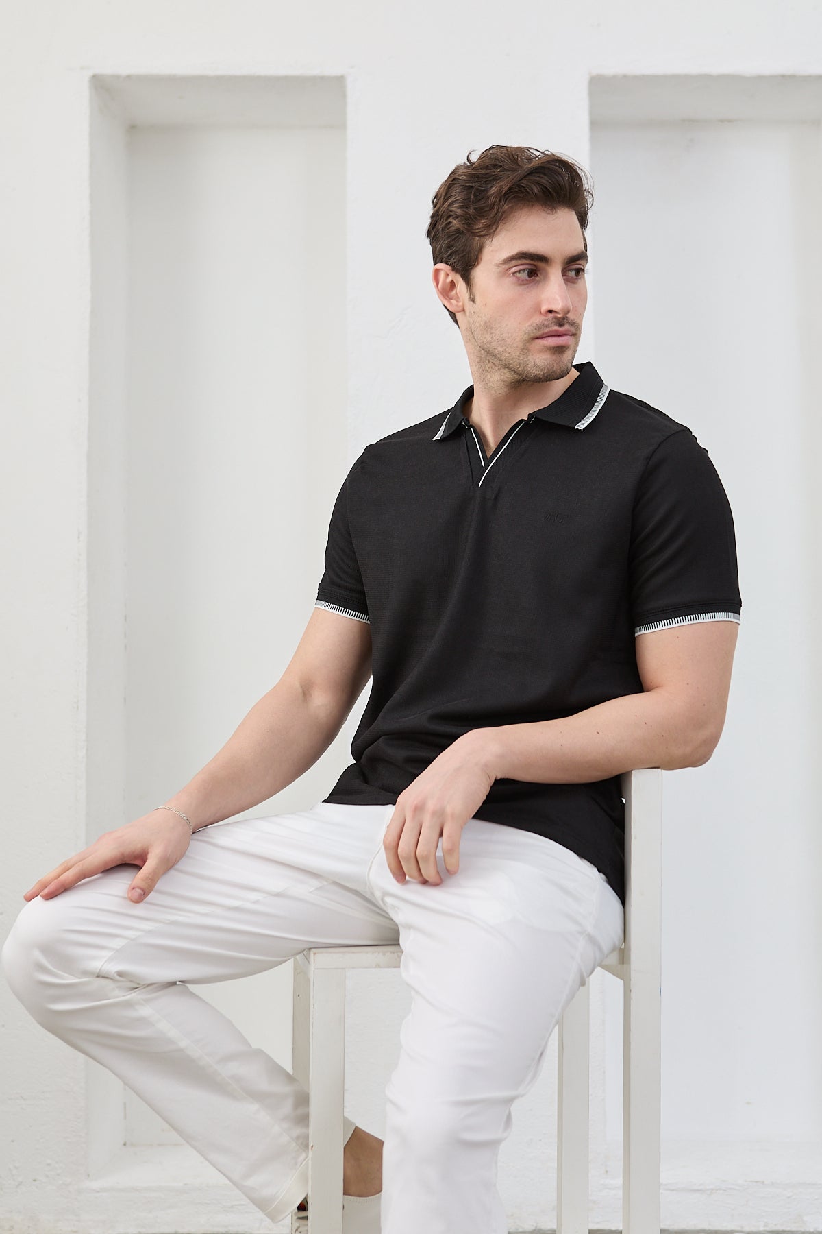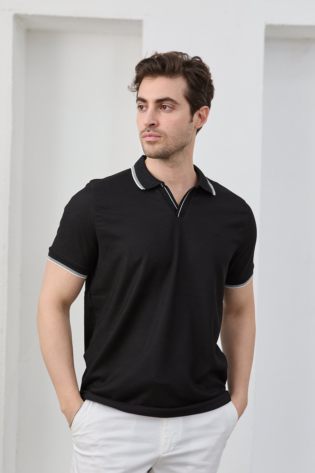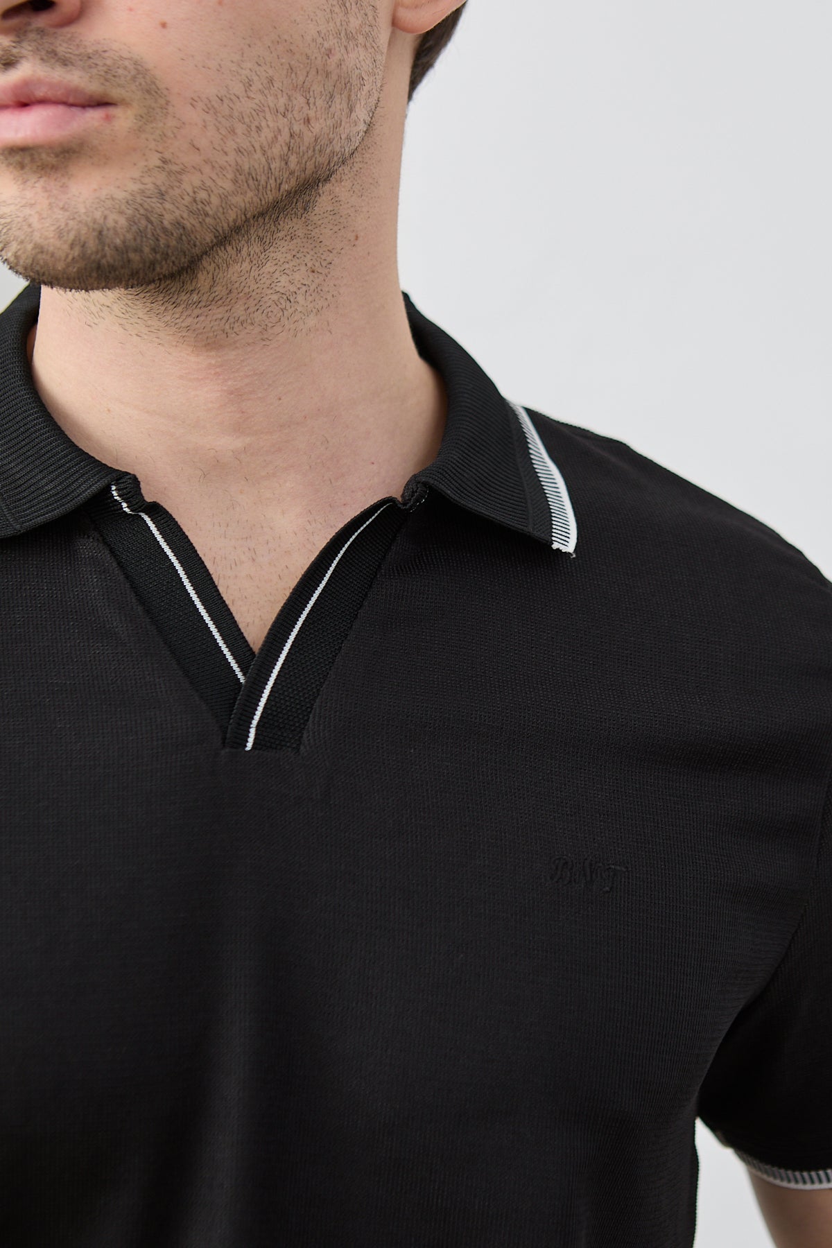 Kısa Kollu Örme Slim Fit Siyah Erkek Polo Tişört
