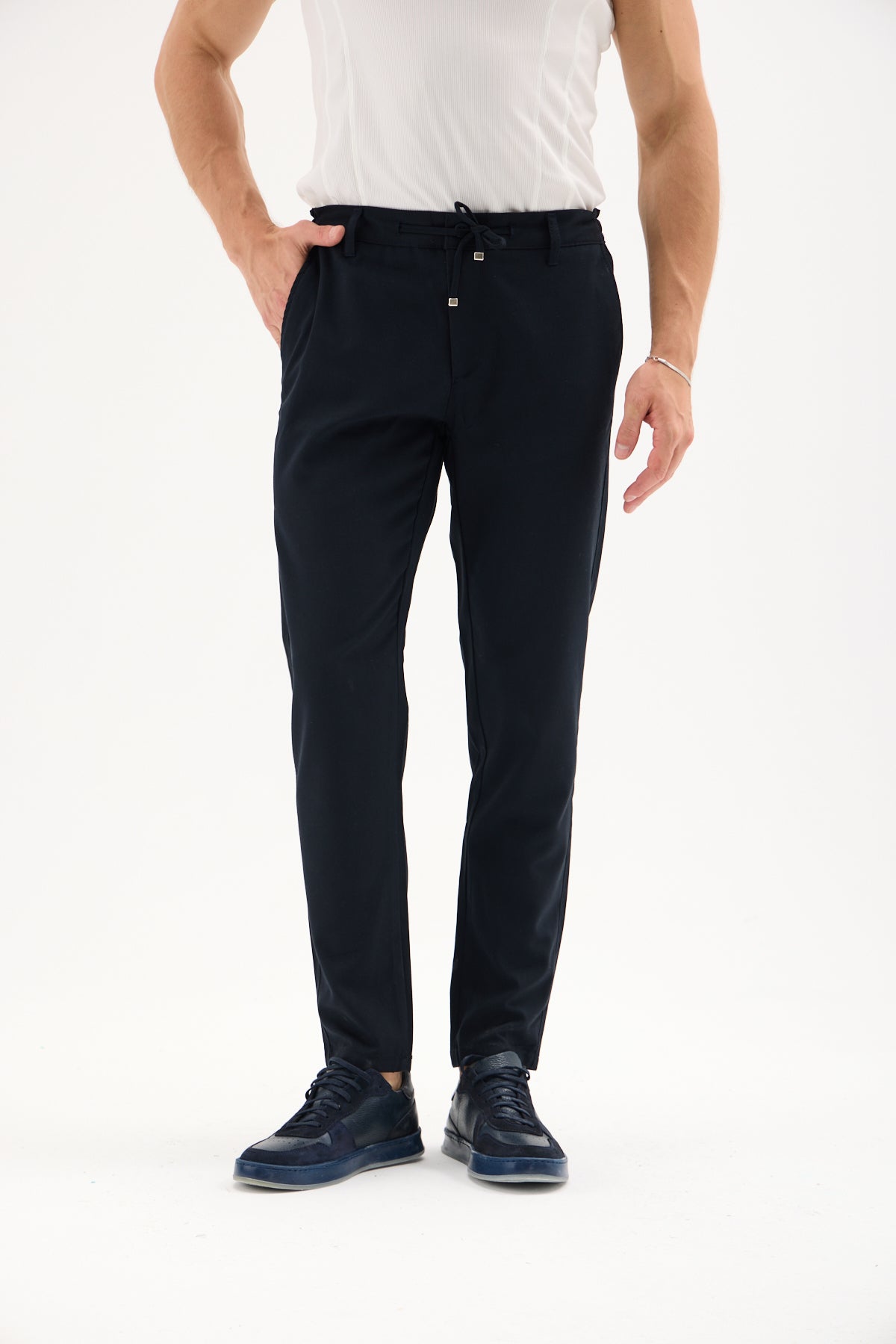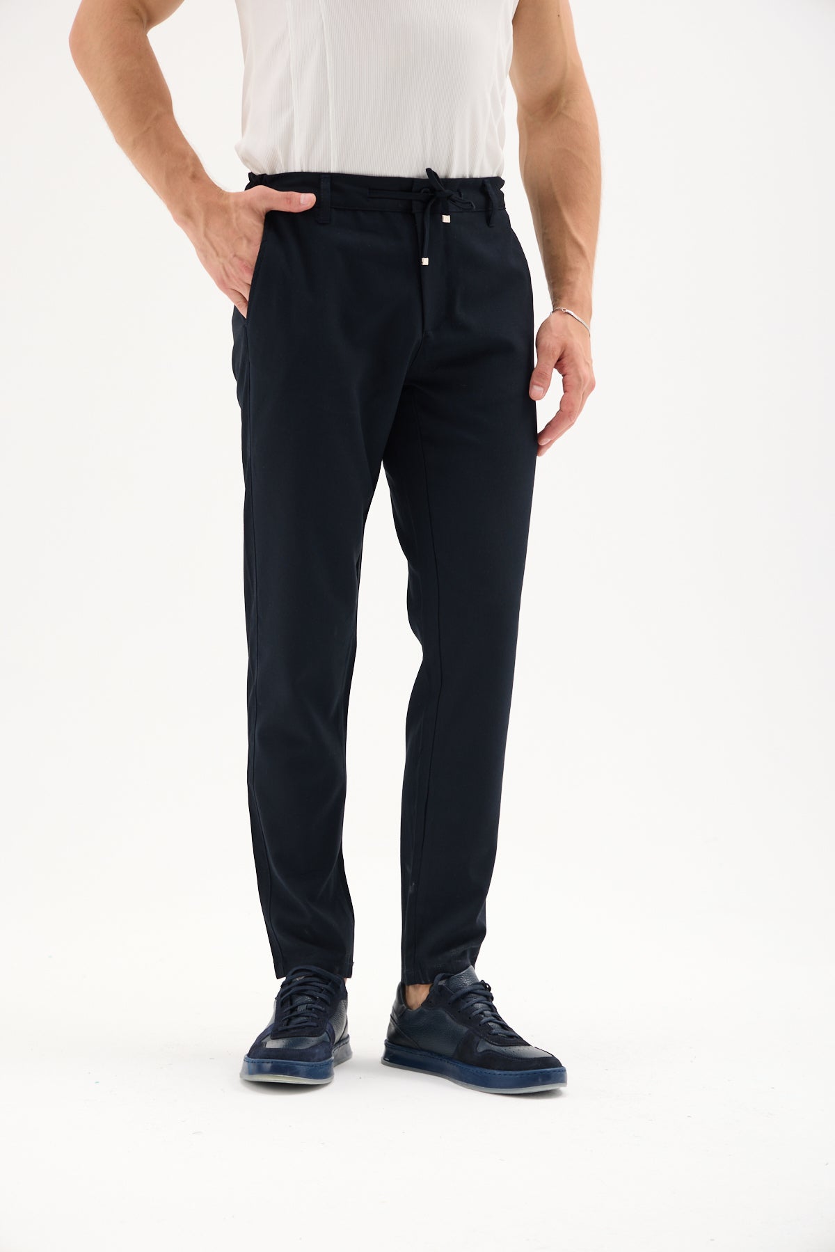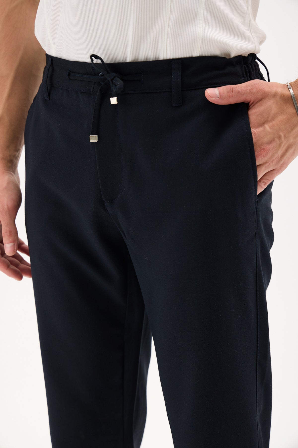Lacivert Beli Lastikli Bağcıklı Jogger Erkek Pantolon