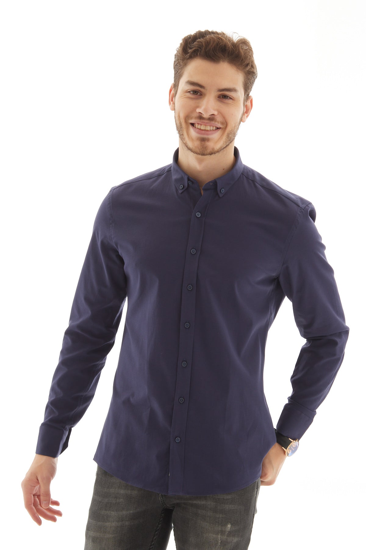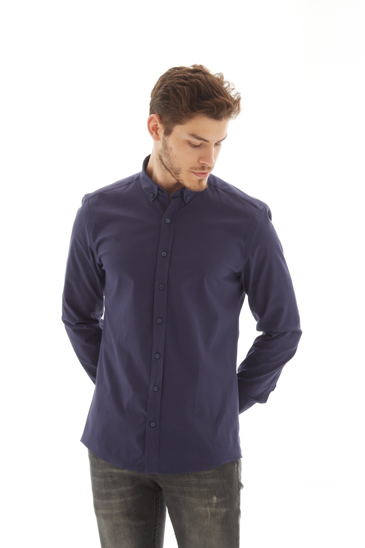 Oxford Slim Fit Lacivert Erkek Gömlek