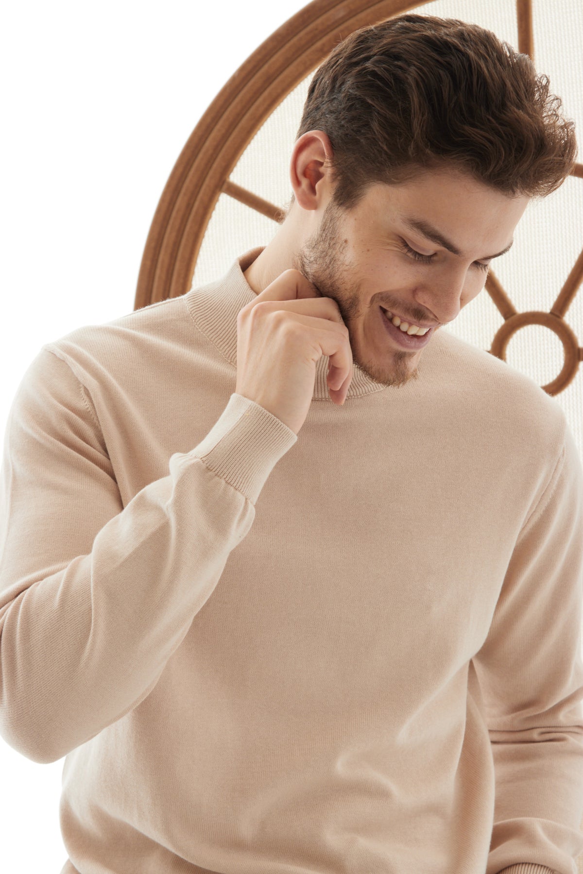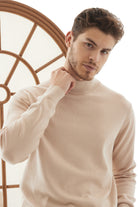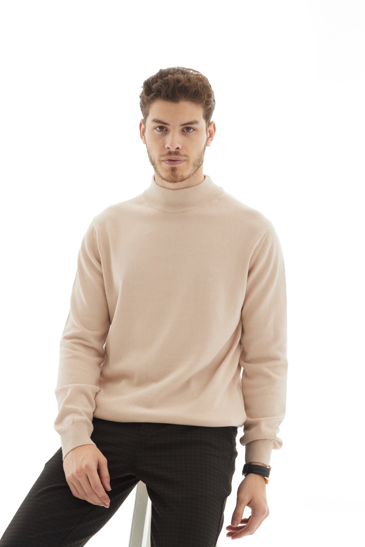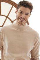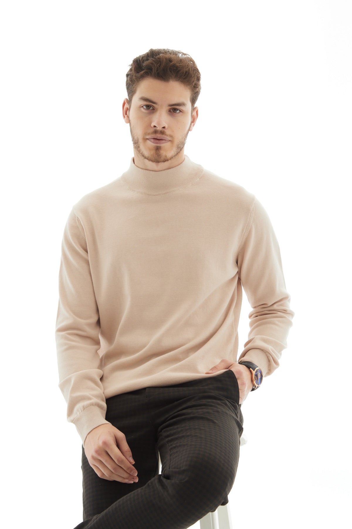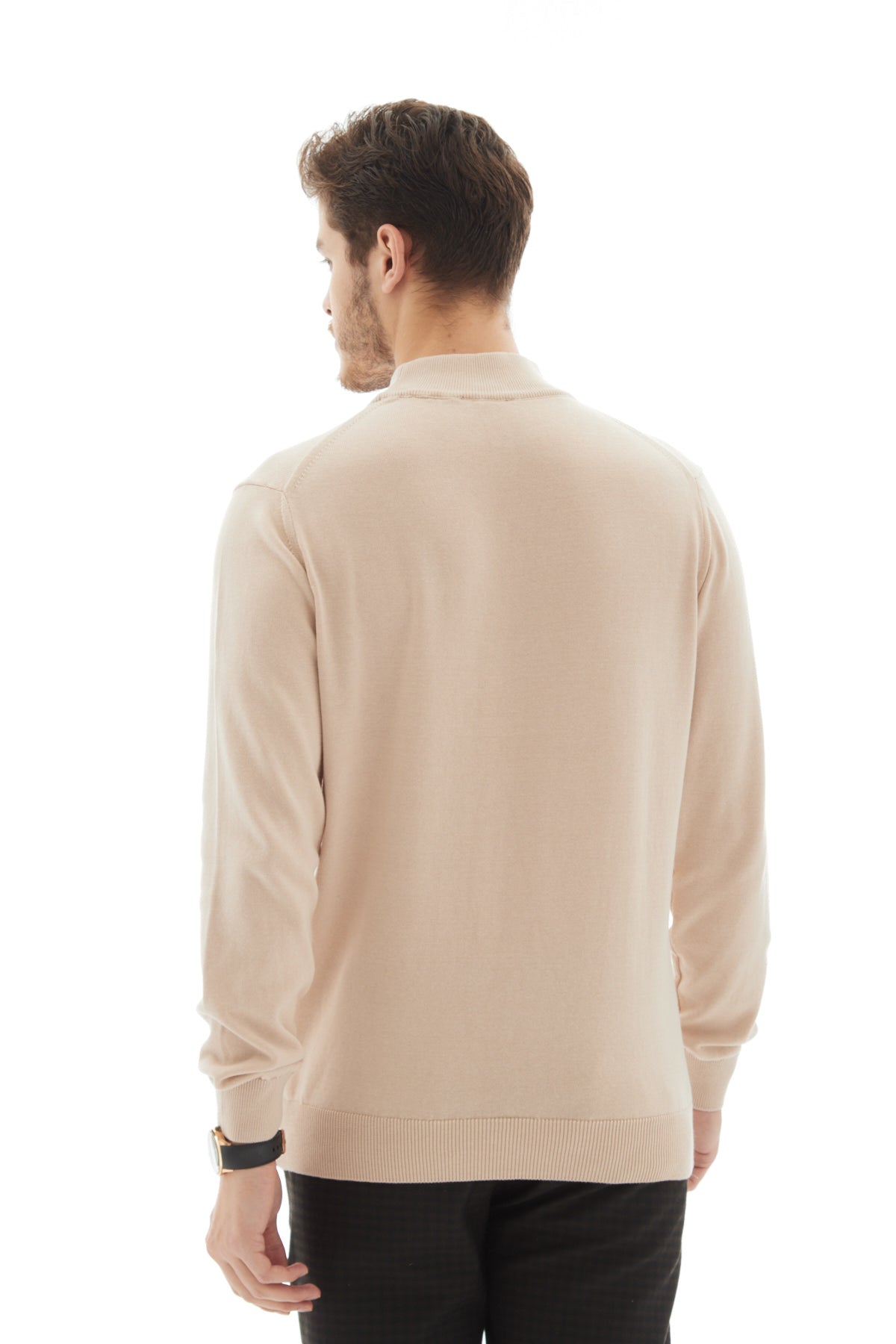 Pamuk Akrilik Slim Fit Yarım Balıkçı Bej Erkek Triko Kazak