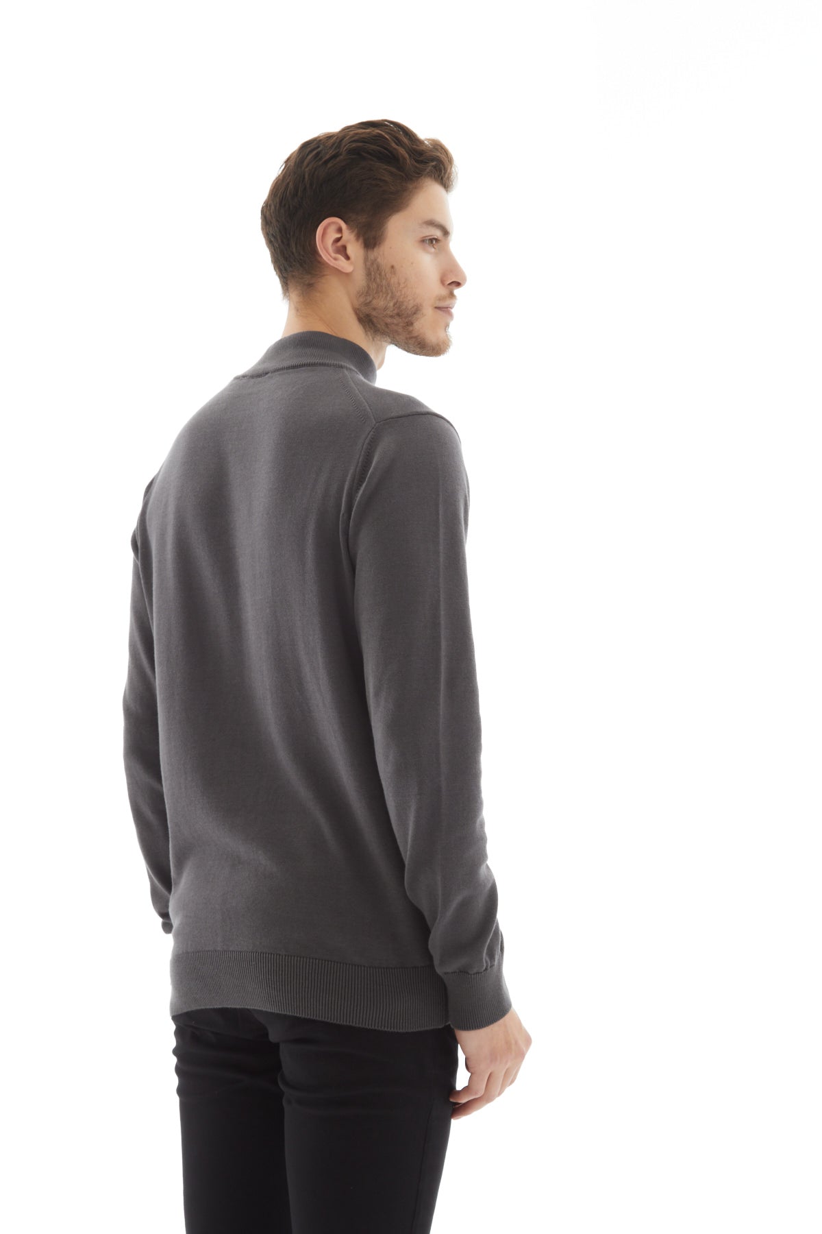 Pamuk Akrilik Slim Fit Yarım Balıkçı Füme Erkek Triko Kazak
