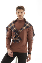 Pamuk Akrilik Slim Fit Yarım Balıkçı Tarçın Erkek Triko Kazak