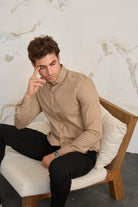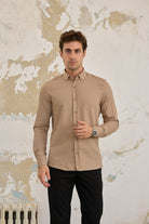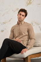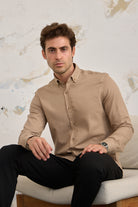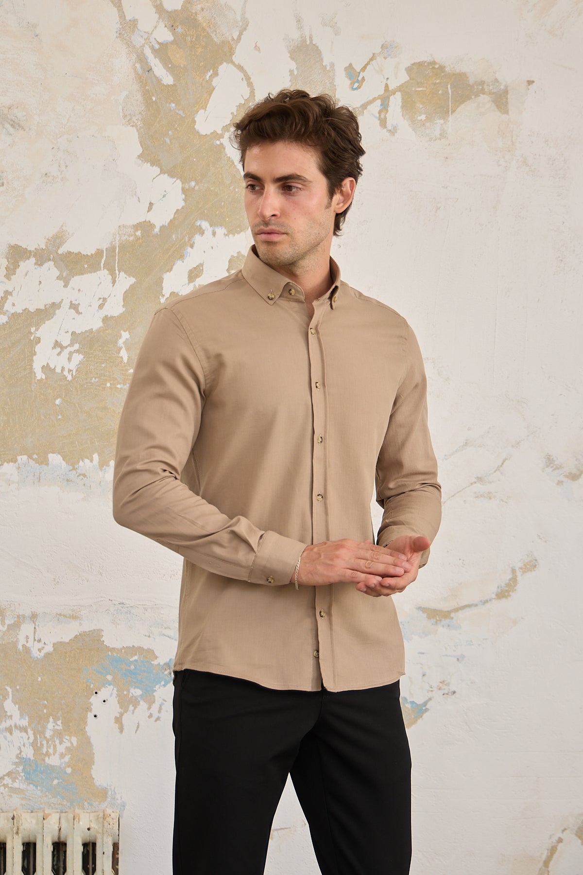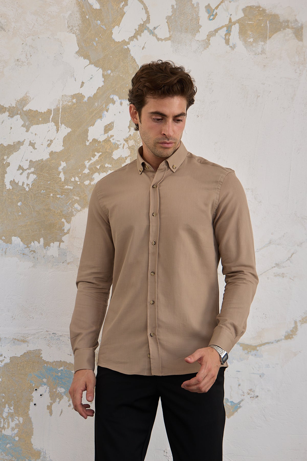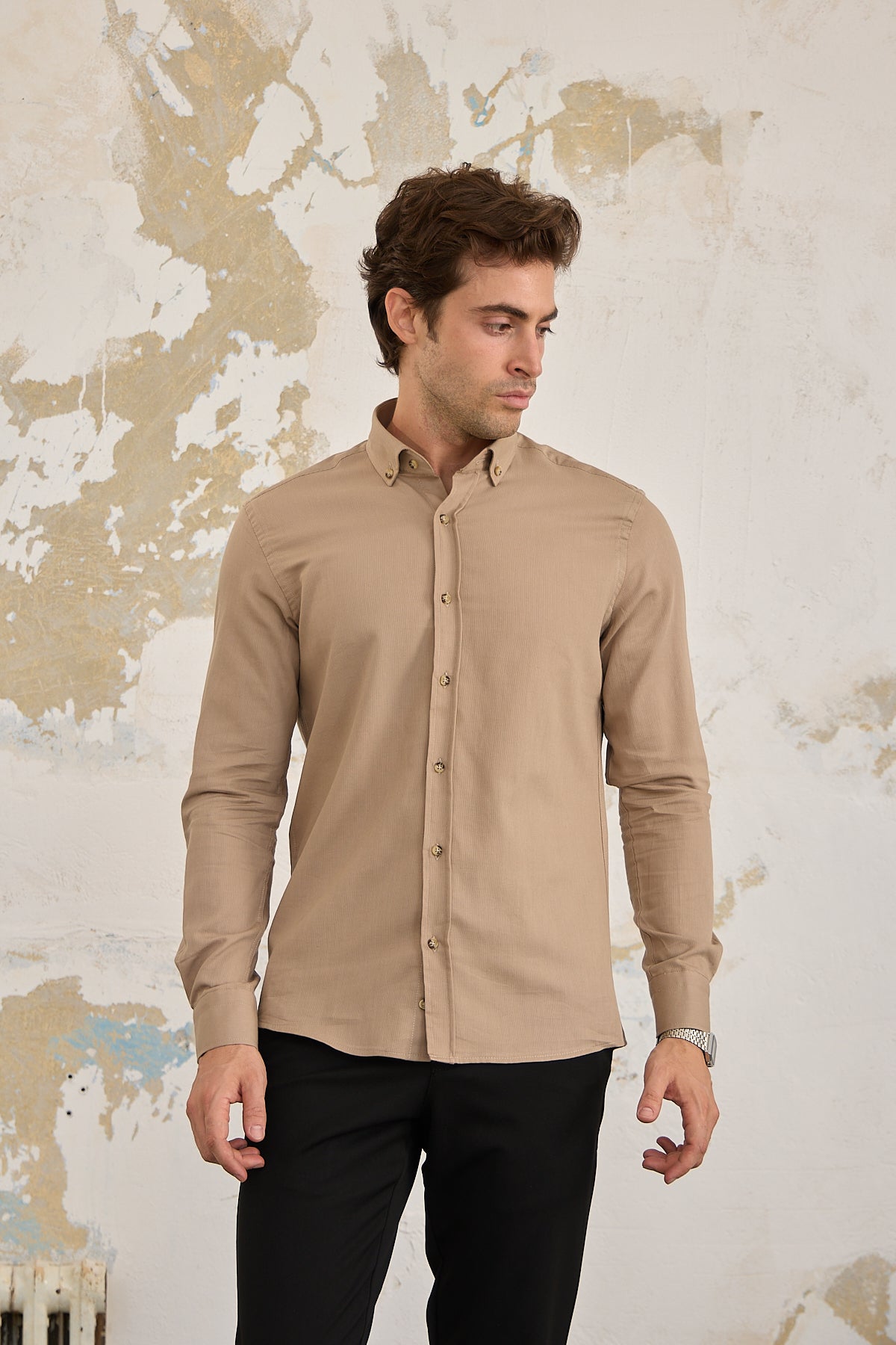 Pamuk Fitilli Kadife Düğmeli Slim Fit Vizon Erkek Gömlek