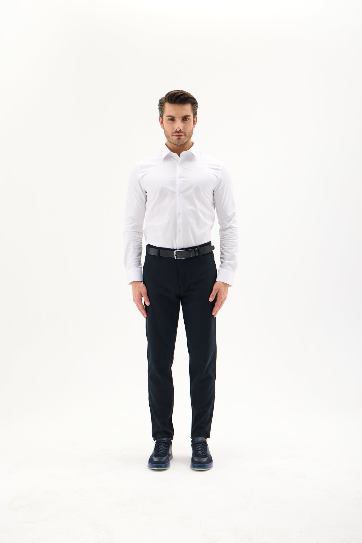 %100 pamuk kumaşıyla nefes alır, gün boyu ferahlık sağlar. Yumuşak dokusu ve slim kesimiyle hem günlük hem iş kombinlerinde zamansız bir parça olarak dolabınızda yerini alır.