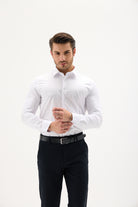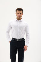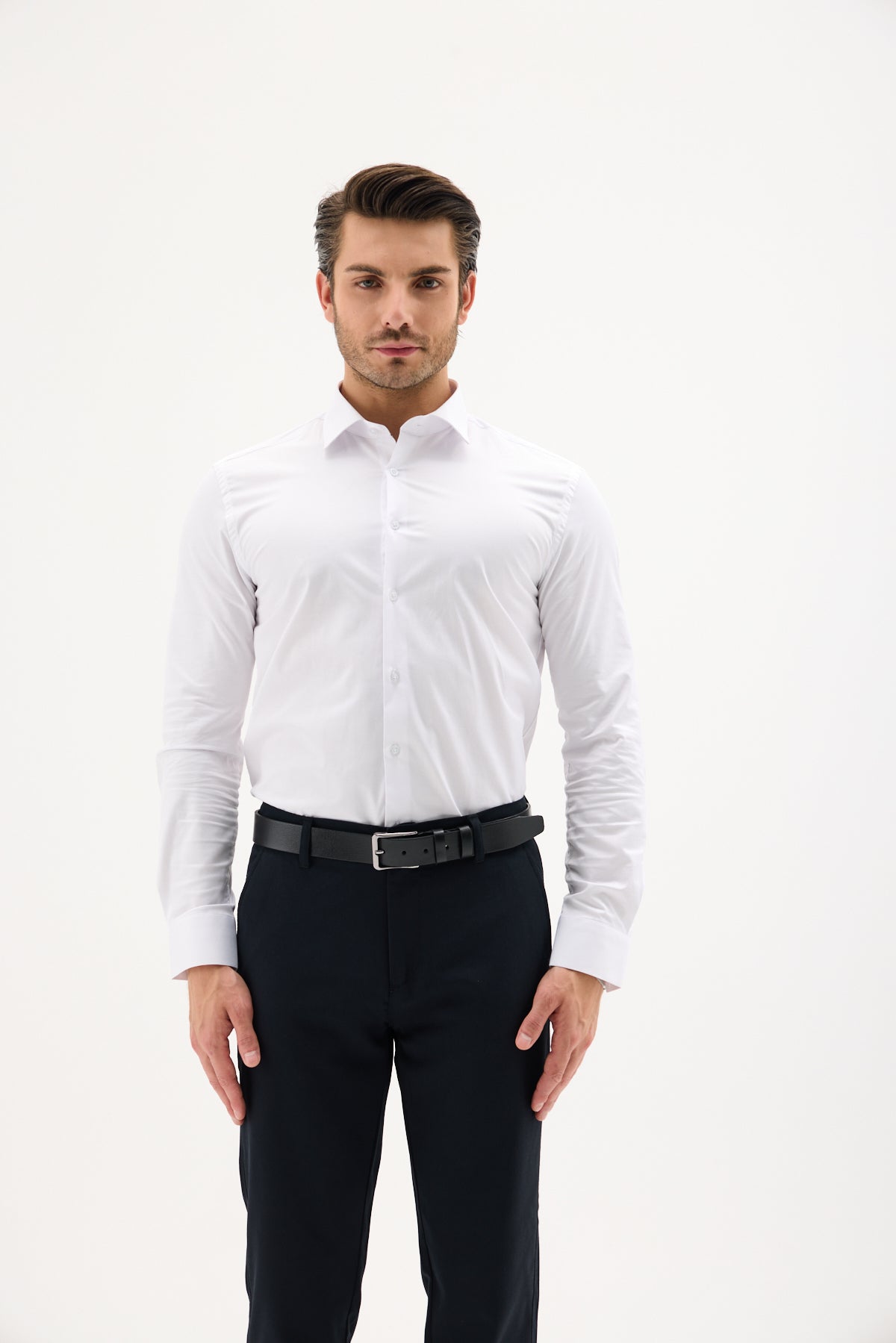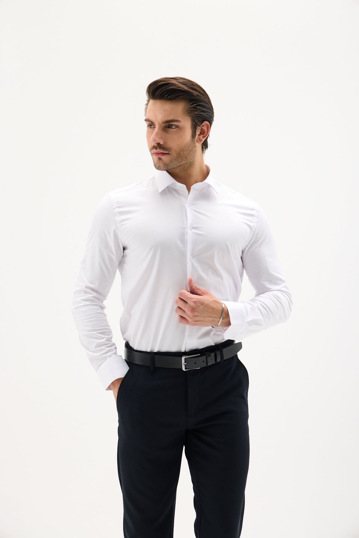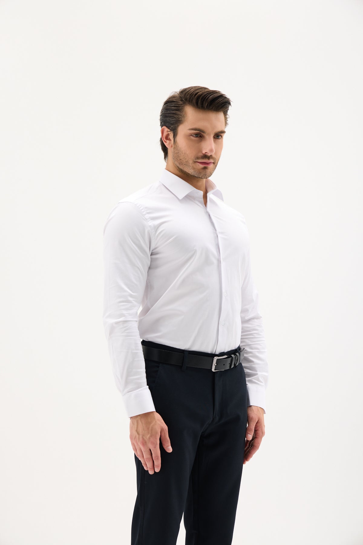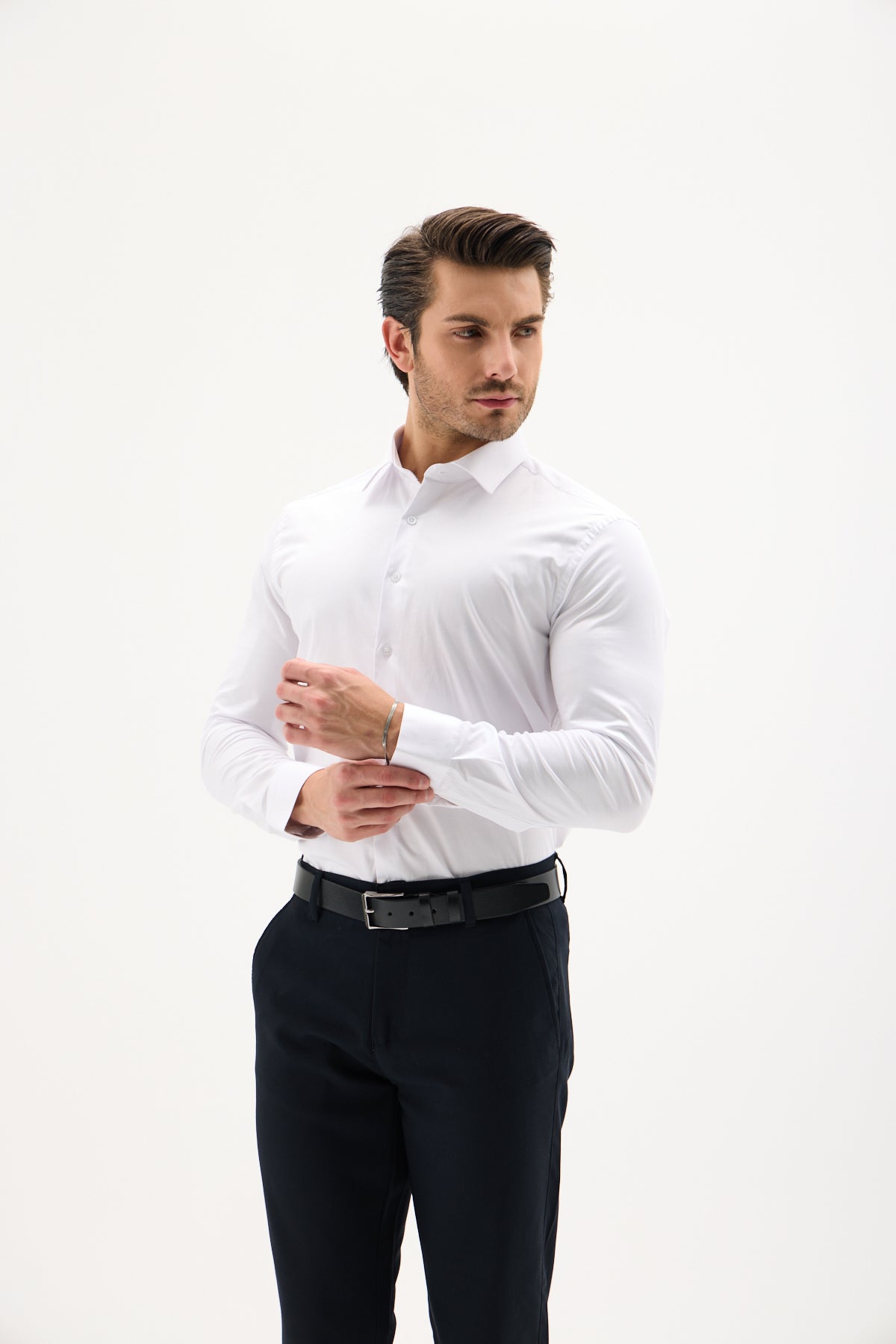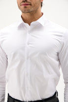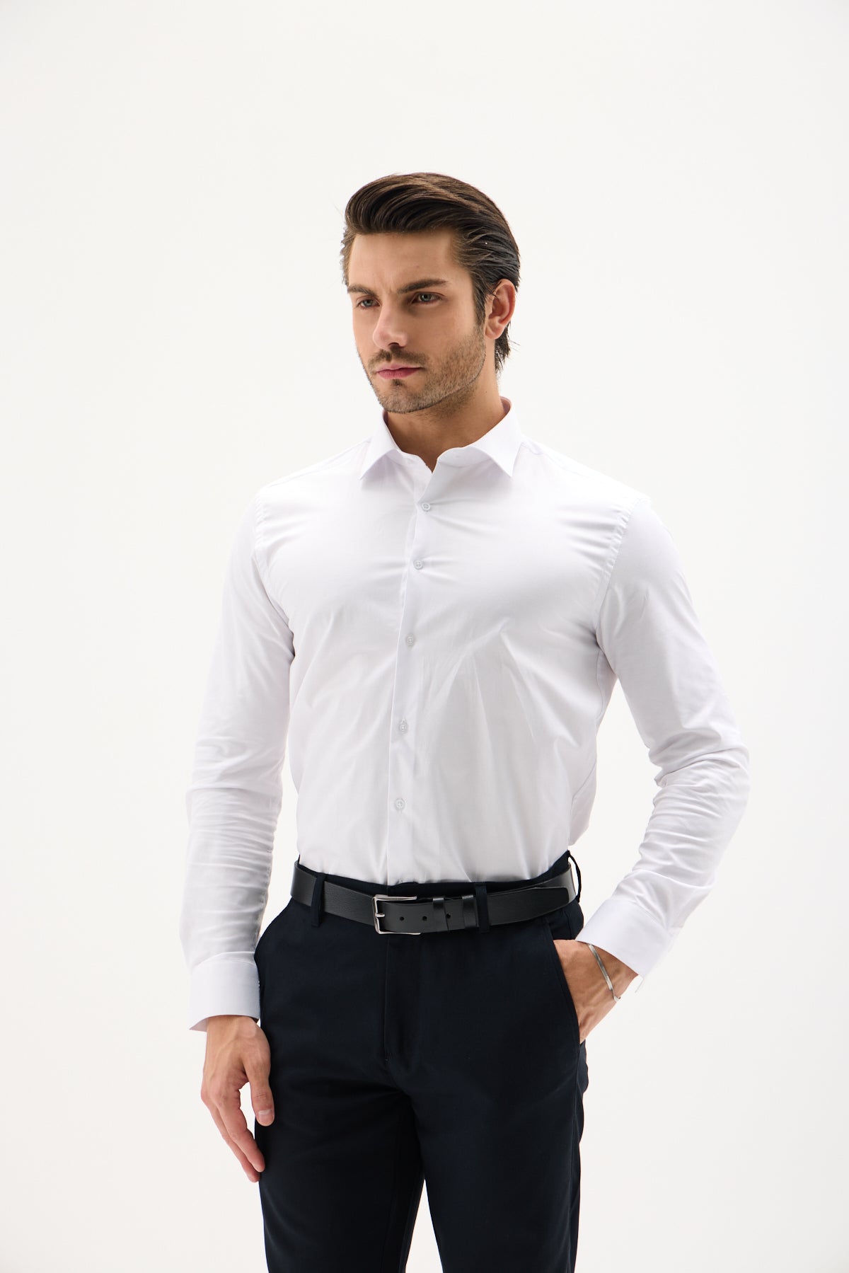 Saten Likra Slim Fit Beyaz Erkek Gömlek
