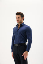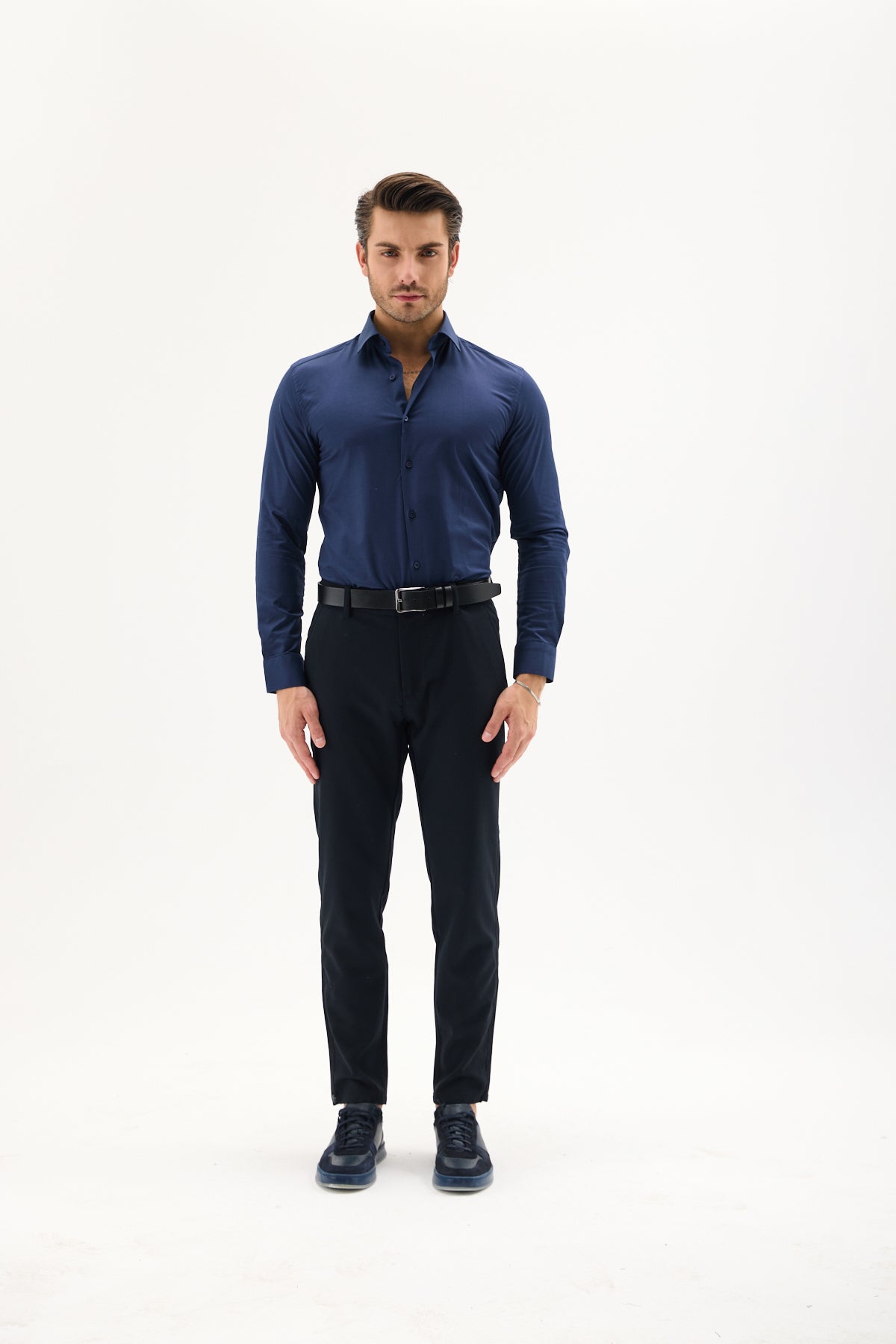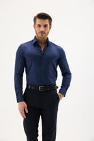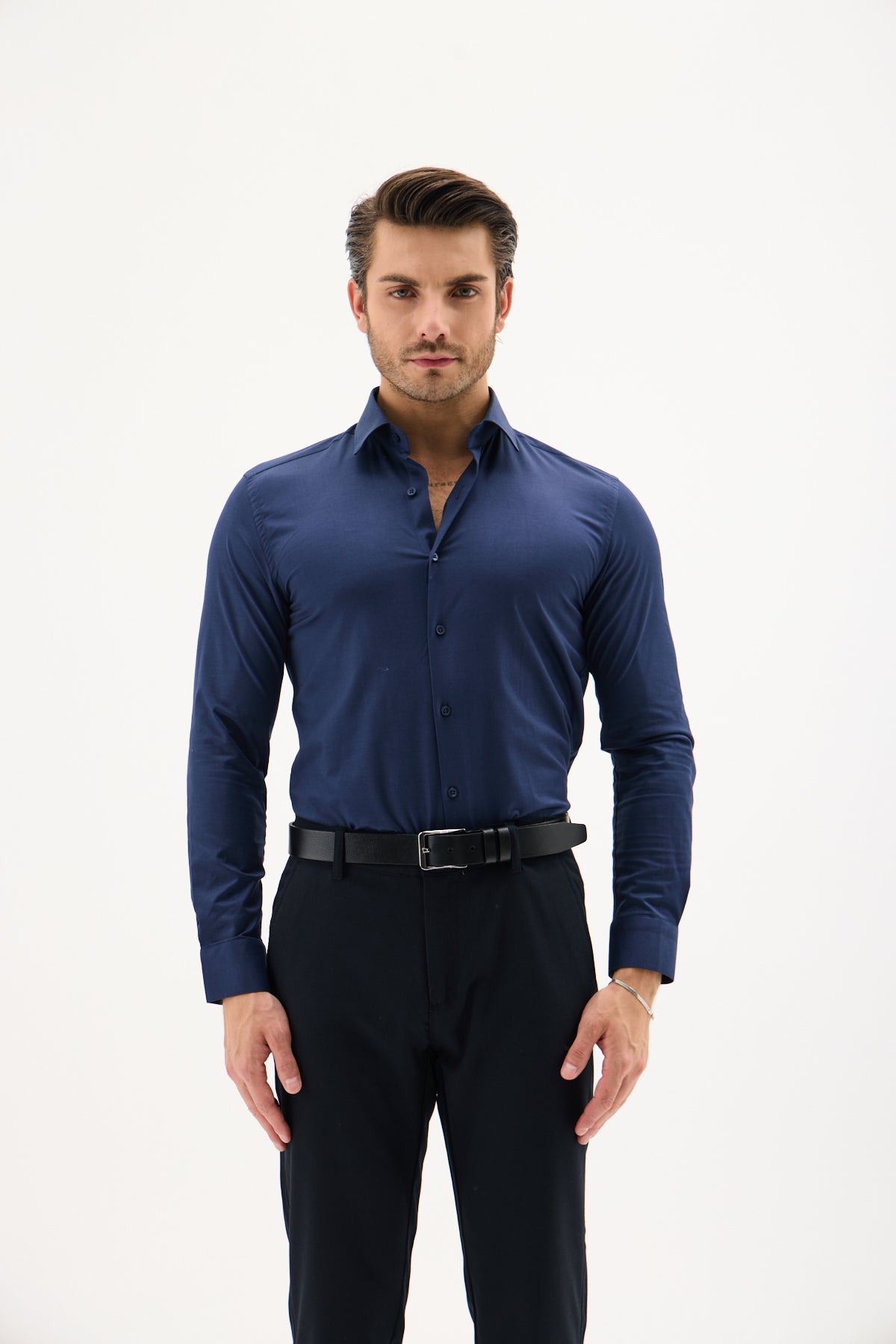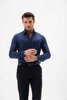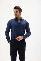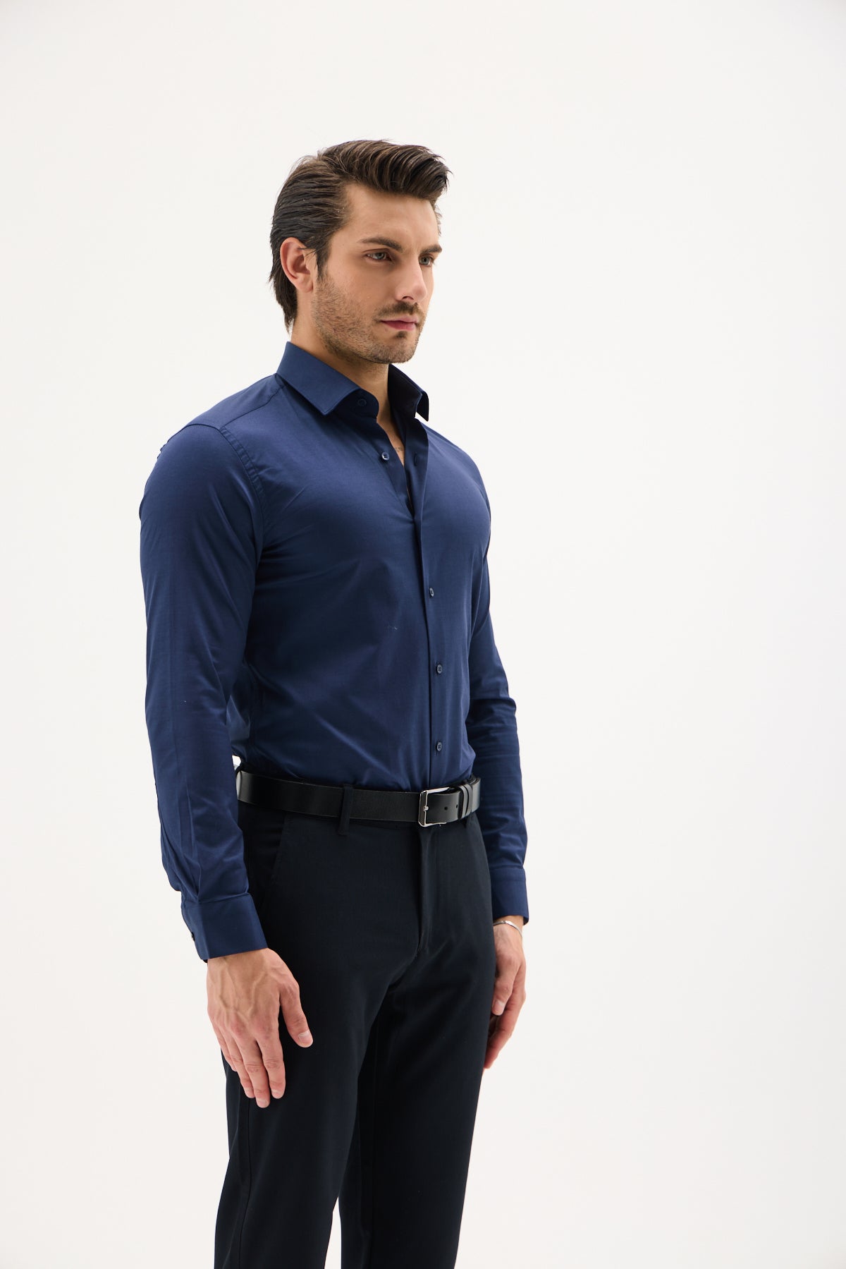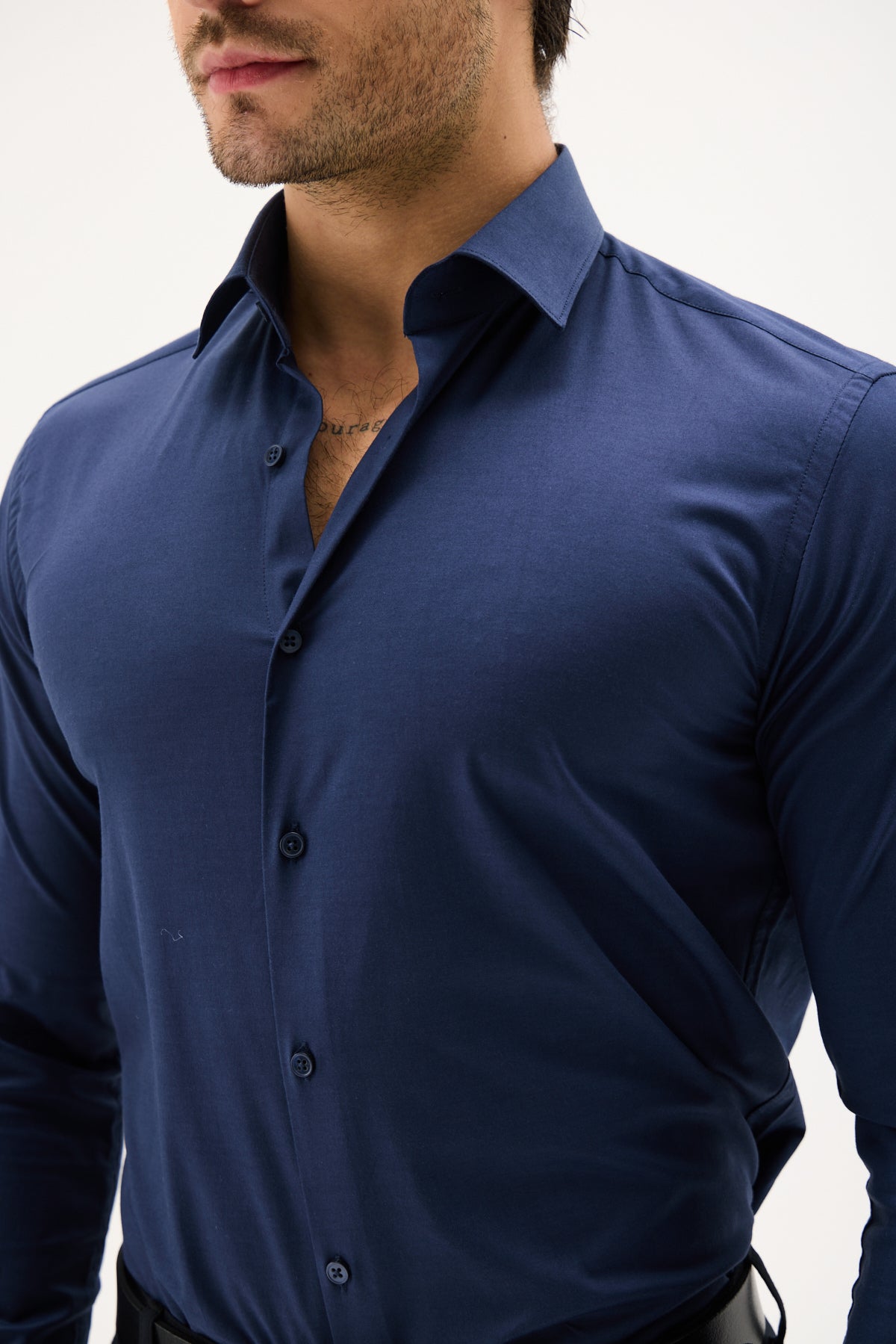 Saten Likra Slim Fit Lacivert Erkek Gömlek