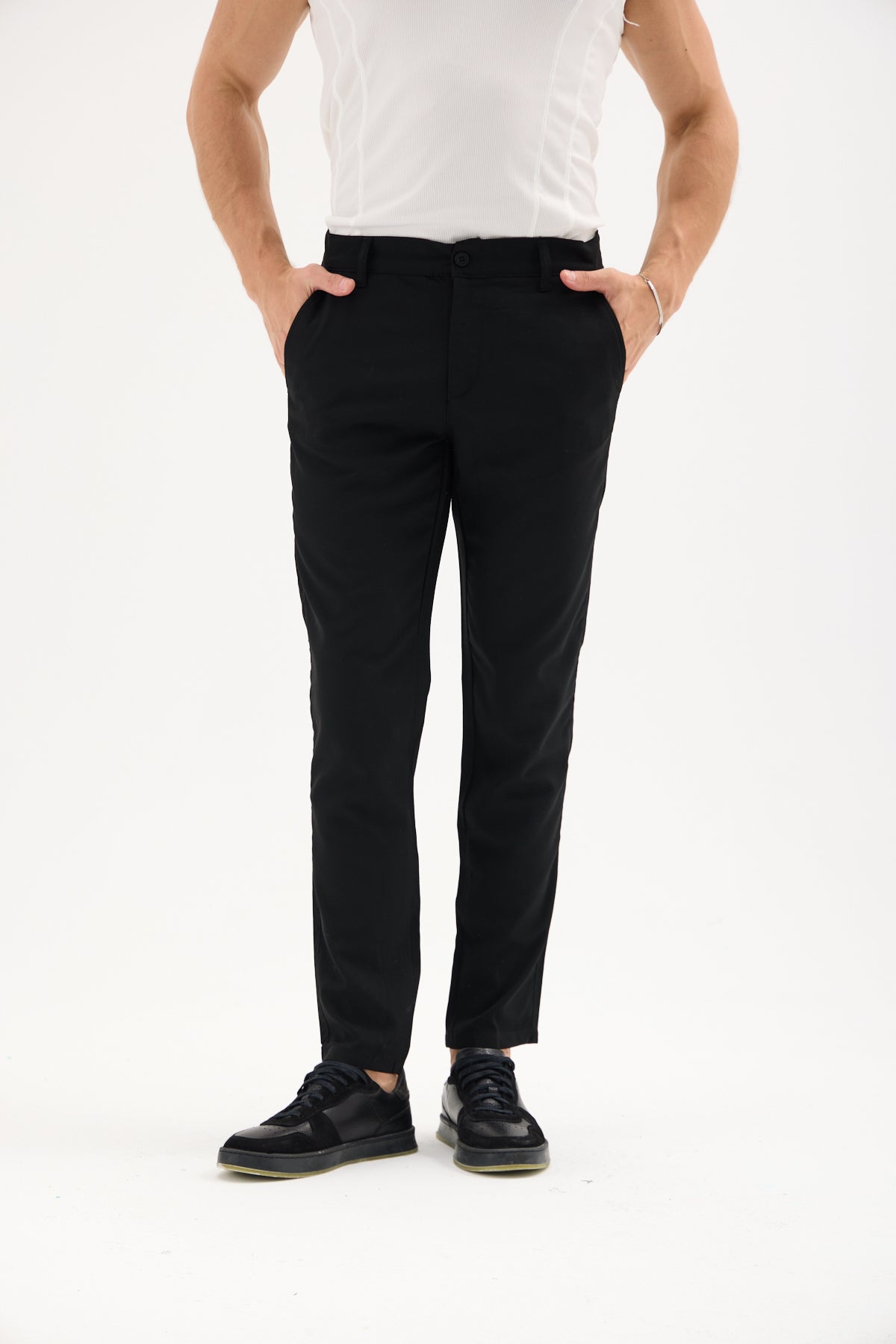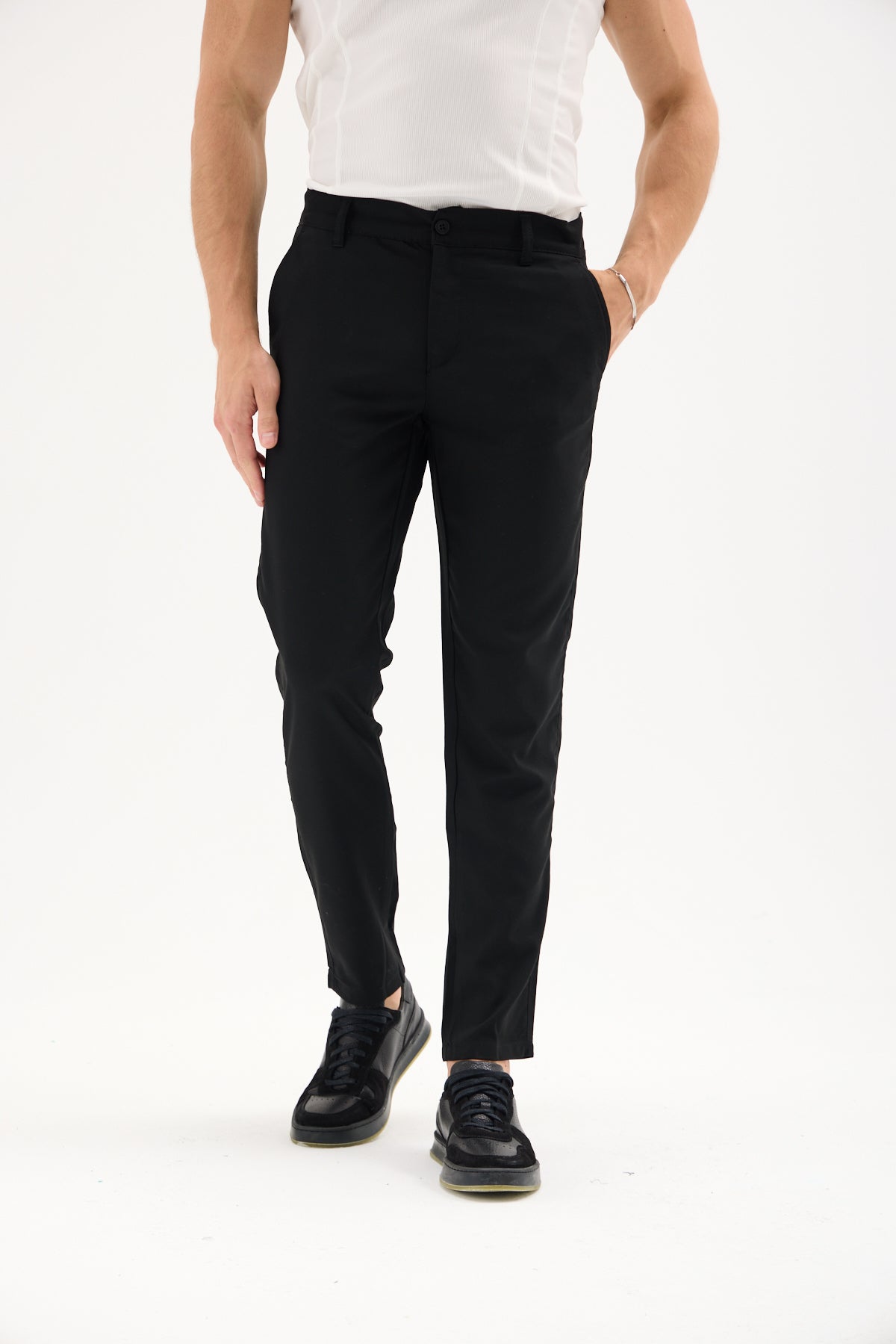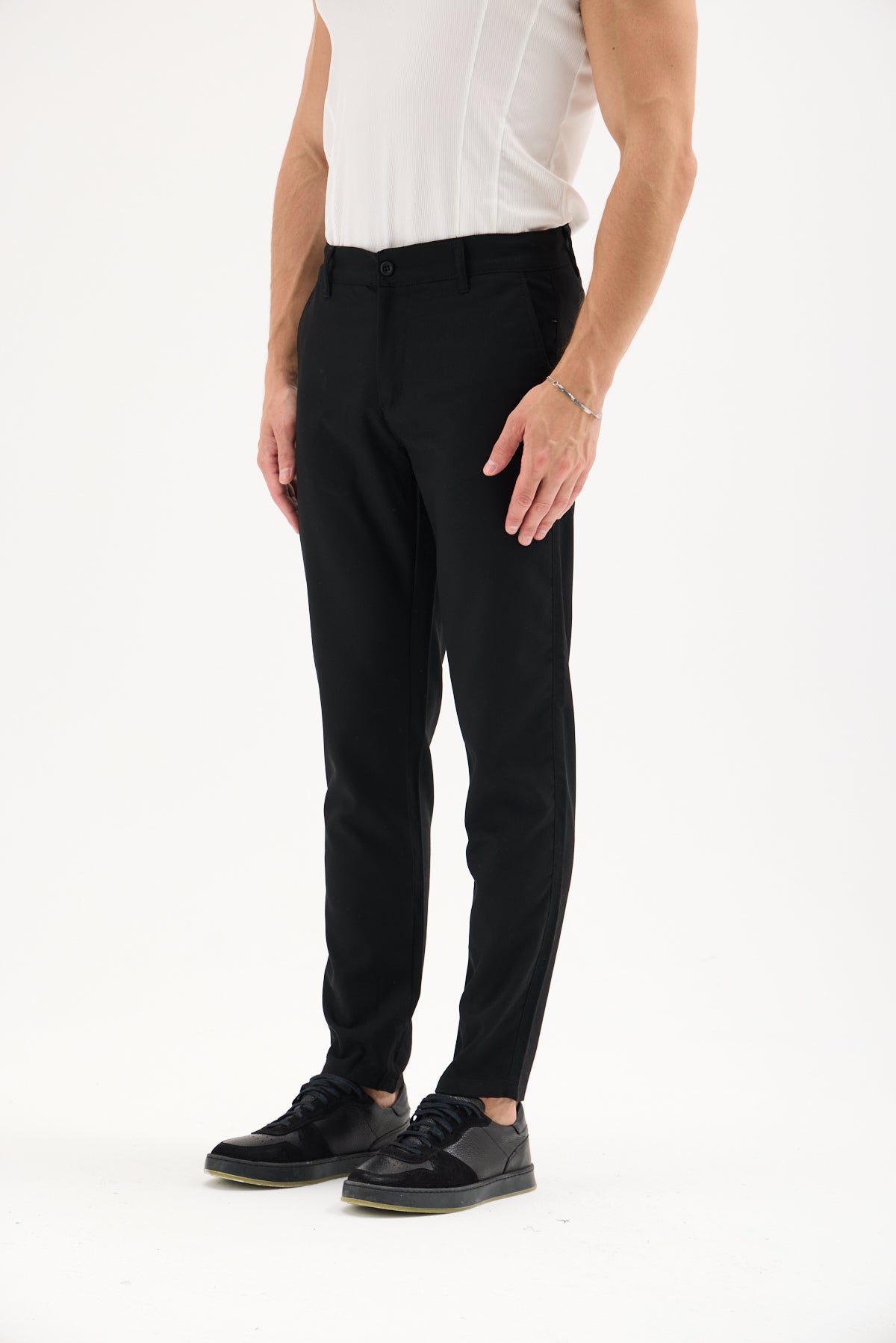 Siyah Klasik Bel Elastan Chino Erkek Pantolon