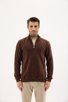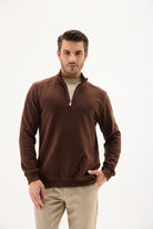 Uzun Kol Fermuarlı Erkek Kahve Sweatshirt